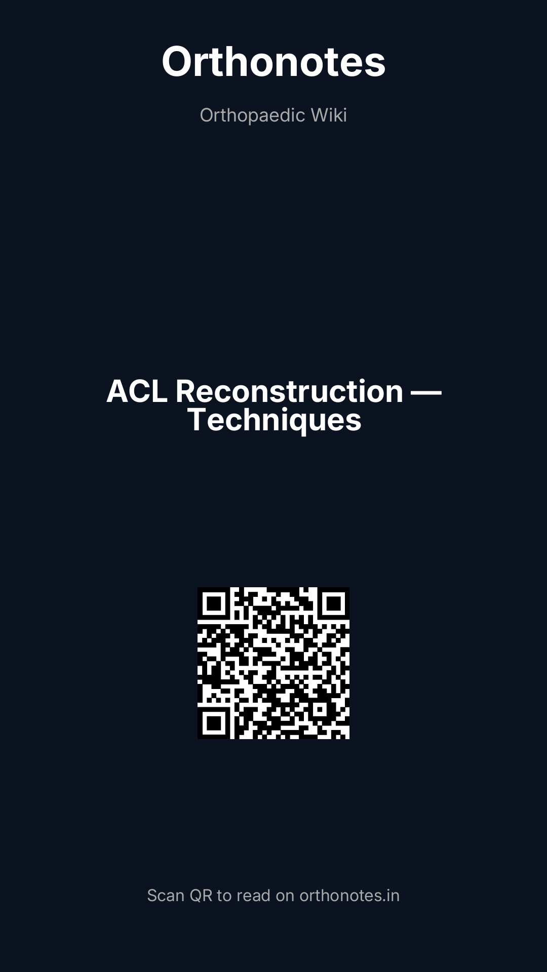 Anterior cruciate ligament (ACL) rupture is one of the most common and clinically significant sports injuries. ACL reconstruction (ACLR) restores knee stability to allow return to pivoting and cutting sports, and prevents secondary meniscal and chondral damage from chronic instability. The choice of graft, fixation method, and surgical technique significantly influences outcomes and long-term graft survival.
