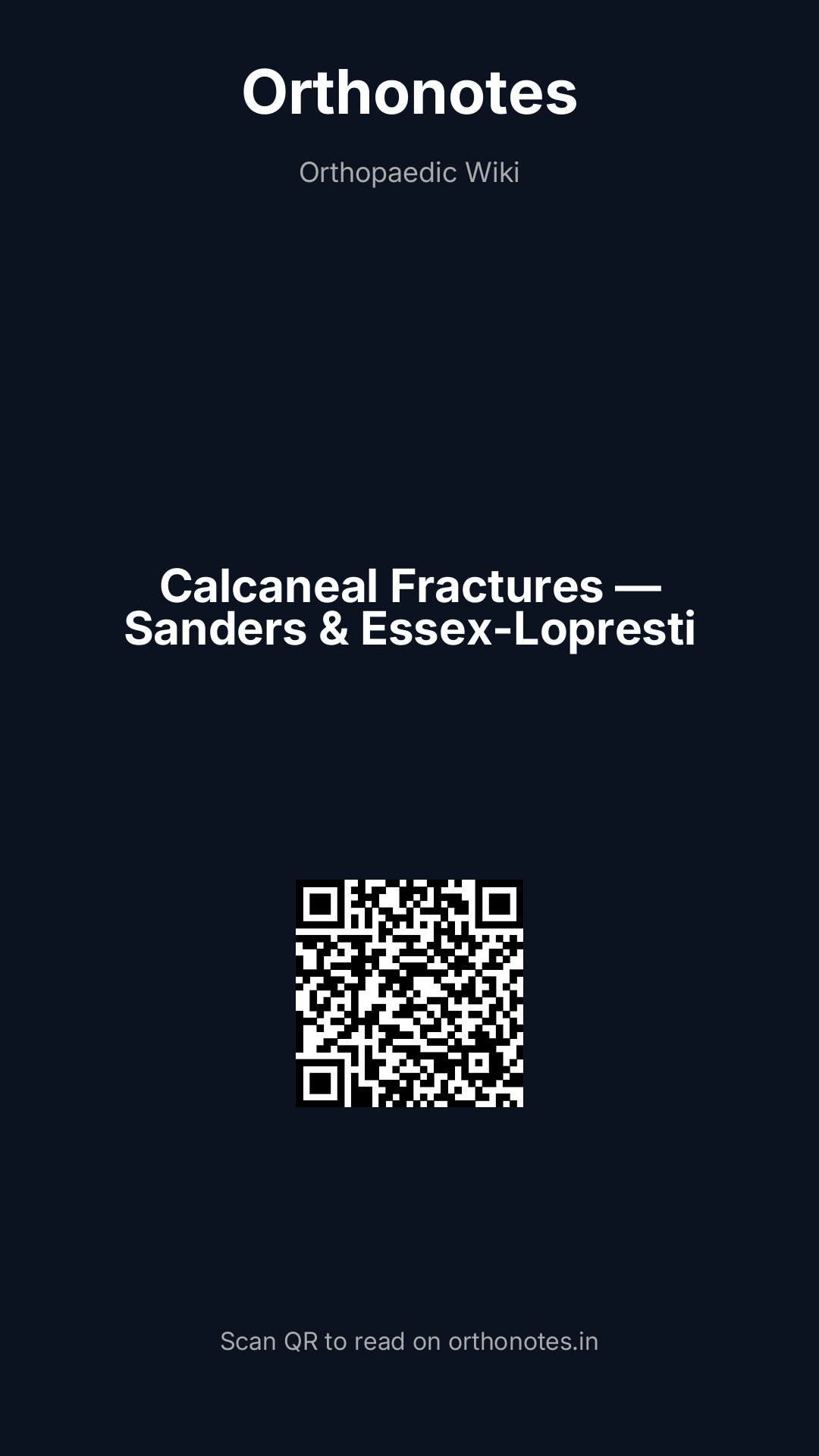 Calcaneal fractures are the most common tarsal fractures, accounting for approximately 60% of all tarsal bone injuries. The majority are intra-articular, involving the posterior facet of the subtalar joint, and result from axial loading — typically a fall from height. The outcomes of these injuries are notoriously variable, and the management remains one of the most debated areas in foot and ankle surgery. The Sanders CT-based classification and the Essex-Lopresti plain radiograph classification are the two foundational systems that guide diagnosis, operative decision-making, and prognosis.