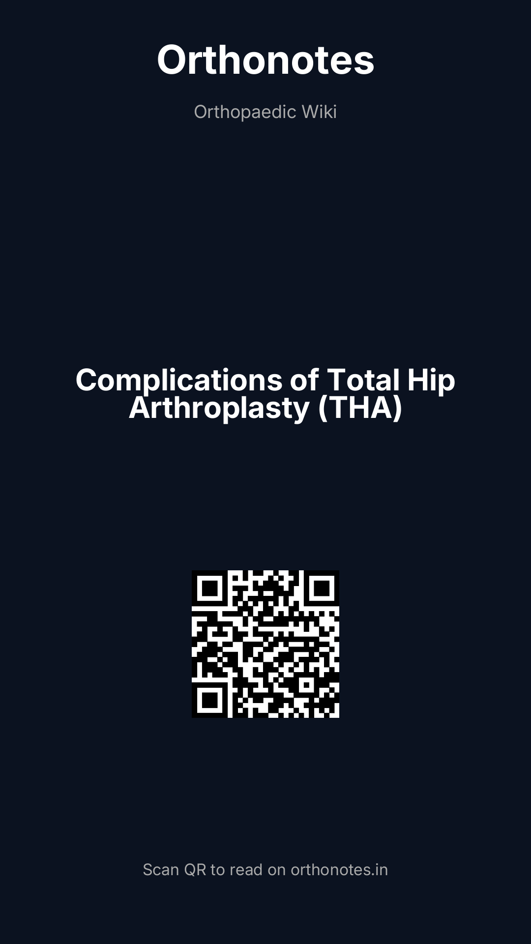 Total hip arthroplasty (THA) is one of the most successful surgical procedures in medicine, producing excellent long-term pain relief and functional improvement in the vast majority of patients. However, as with all major surgical procedures, THA carries a defined spectrum of complications ranging from common minor issues to rare but catastrophic events. Understanding the incidence, mechanisms, risk factors, prevention strategies, and management of THA complications is essential for the arthroplasty surgeon. Complications can be broadly categorised as early (within 30 days), intermediate (30 days to 2 years), and late (>2 years), though there is significant overlap.