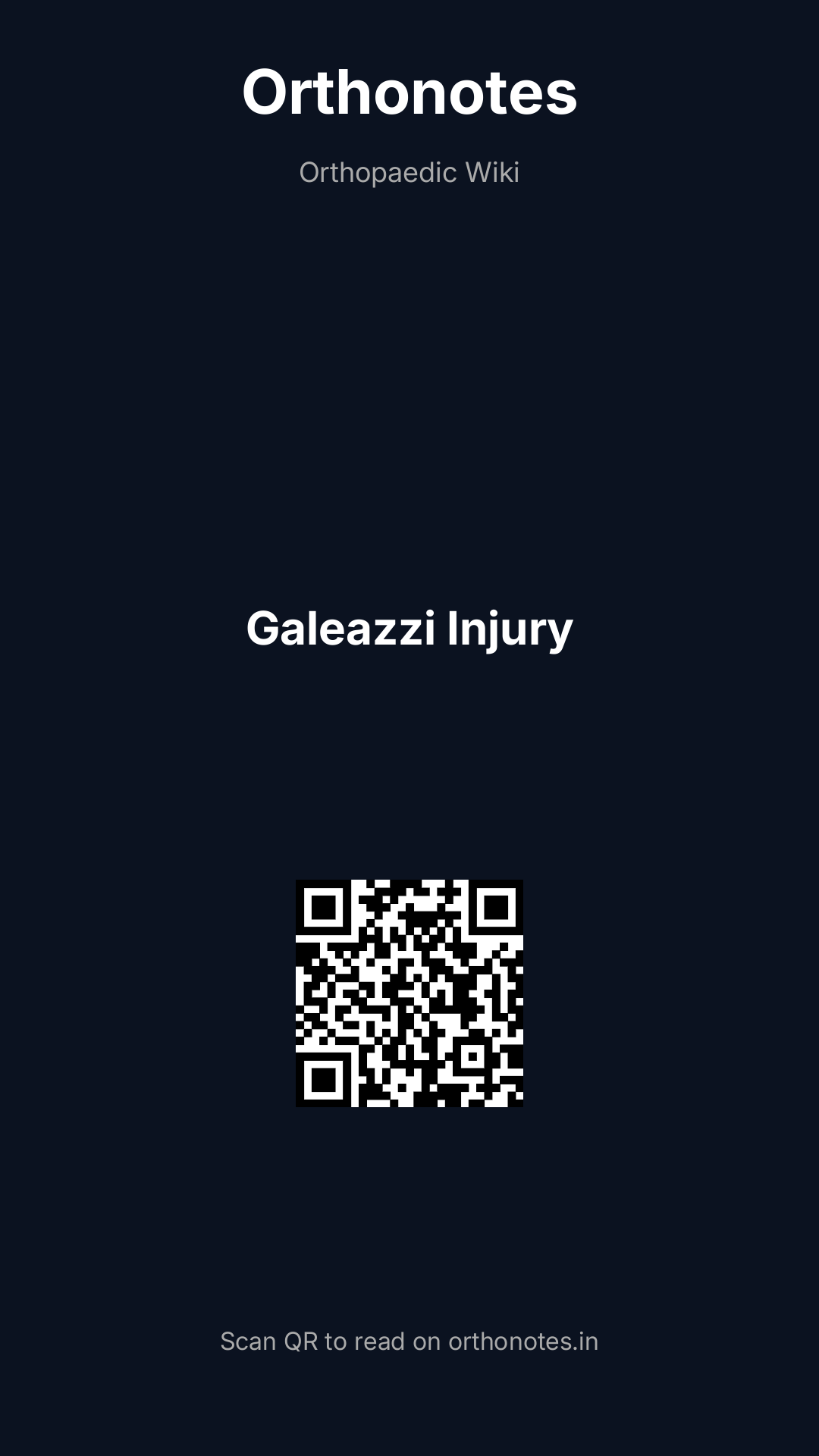 A Galeazzi injury refers to a fracture of the distal third of the radius associated with dislocation or disruption of the distal radioulnar joint (DRUJ). It is an unstable forearm injury that requires accurate recognition and appropriate management. In adults, Galeazzi injuries almost always require surgical fixation due to the inherent instability of the DRUJ after radial fracture.