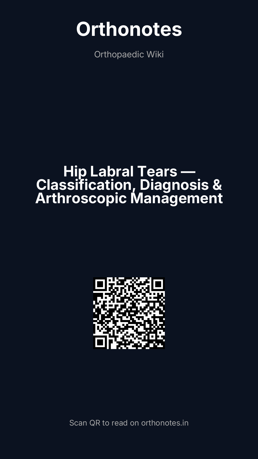 | Anatomical location | Descriptive — based on the clock-face position of the tear | Anterosuperior (most common — 12-3 o`clock position, associated with cam FAI); anterior (10-12 o`clock, associated with hip dysplasia and trauma); superior (12 o`clock, associated with pincer FAI); posterior (rarely symptomatic); inferior (rare) | Used universally in arthroscopic reports; the anterosuperior quadrant is the most clinically relevant zone for FAI-related tearing |