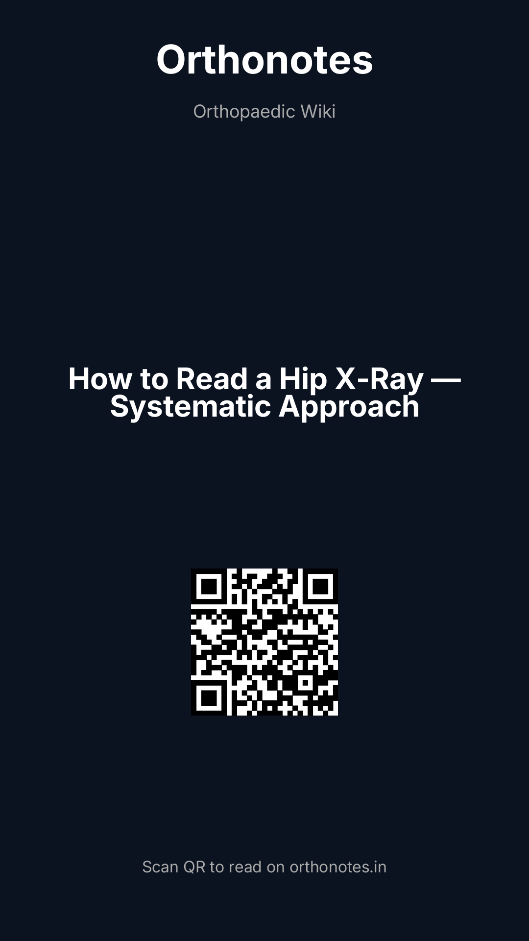 A comprehensive systematic approach to interpreting hip radiographs, covering patient positioning, anatomical landmarks, key lines and angles, pathological patterns, and common hip conditions — essential for all orthopaedic surgeons and trainees.