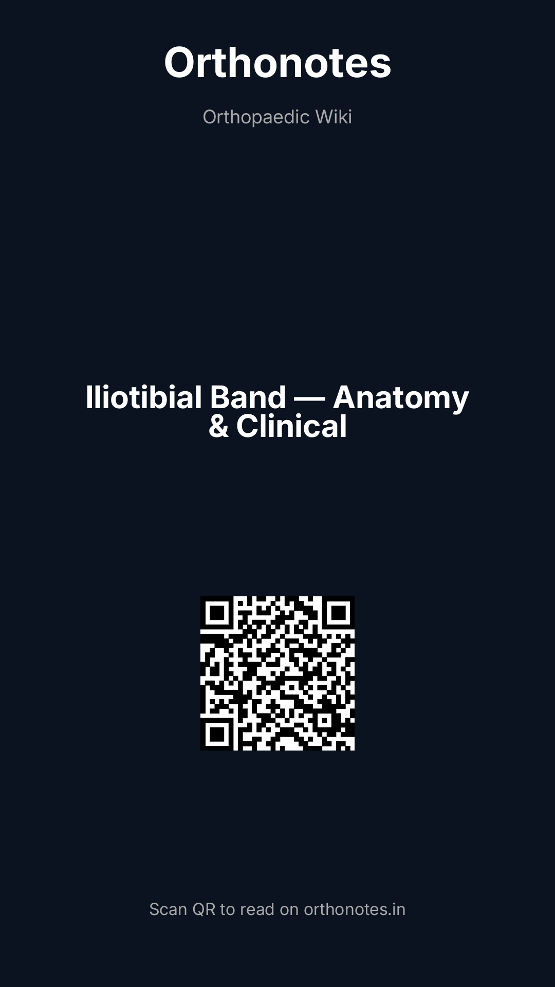 The iliotibial band (ITB) is a thick, longitudinal band of fascia running along the lateral thigh and knee, formed primarily by the confluence of the tensor fasciae latae (TFL) and gluteus maximus muscles. It is the thickest and strongest fascial condensation in the body and plays a critical role in lateral stabilisation of the knee during the stance phase of gait. The ITB is frequently implicated in two specific clinical syndromes — iliotibial band syndrome (ITBS, the most common cause of lateral knee pain in runners) and the iliotibial band contracture in cerebral palsy and other conditions causing hip abductor spasticity. Understanding the anatomy, biomechanics, and clinical presentation of ITB conditions is essential for all orthopaedic surgeons.