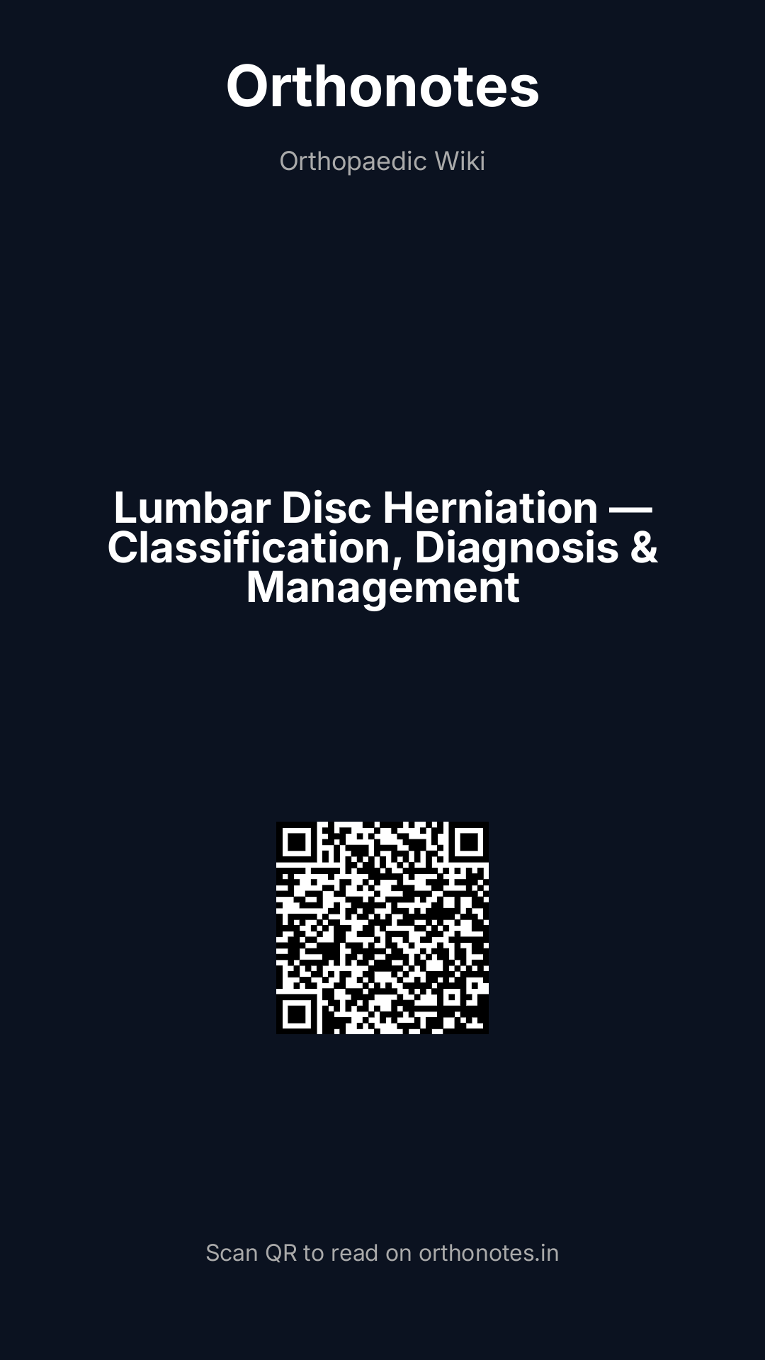 Lumbar disc herniation (LDH) is one of the most common and clinically significant conditions in orthopaedic and spinal surgery, affecting approximately 1–3% of the population at any given time and accounting for the majority of surgically treated spinal conditions worldwide. It occurs when nuclear material from the intervertebral disc — the nucleus pulposus — migrates through a defect in the annulus fibrosus to compress adjacent neural structures (nerve roots or, in severe cases, the cauda equina). The clinical syndrome that results — radiculopathy — is characterised by pain, paraesthesia, and neurological deficit in the dermatomal and myotomal distribution of the compressed nerve root, and must be distinguished from referred (non-dermatomal) back pain. The vast majority of lumbar disc herniations (approximately 90%) resolve with conservative management within 6–12 weeks; surgery is indicated for a minority of patients who fail conservative management or who present with progressive neurological deficit or cauda equina syndrome.