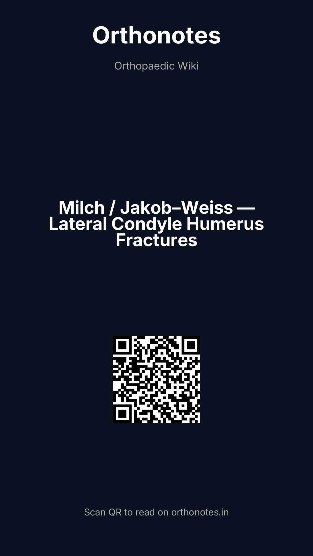 Lateral condyle fractures are the second most common elbow fracture in children (after supracondylar fractures), accounting for approximately 15–17% of all paediatric elbow fractures. They occur predominantly in children aged 5–10 years and present particular diagnostic and management challenges: the fragment is largely cartilaginous (making radiological assessment of true displacement difficult), the fracture is inherently unstable (due to the pull of the forearm extensors attached to the lateral condyle), and — critically — the fragment may rotate, making anatomical reduction essential to avoid malunion, non-union, and avascular necrosis. The Milch classification (anatomical) and the Jakob-Weiss classification (displacement-based) guide surgical decision-making.