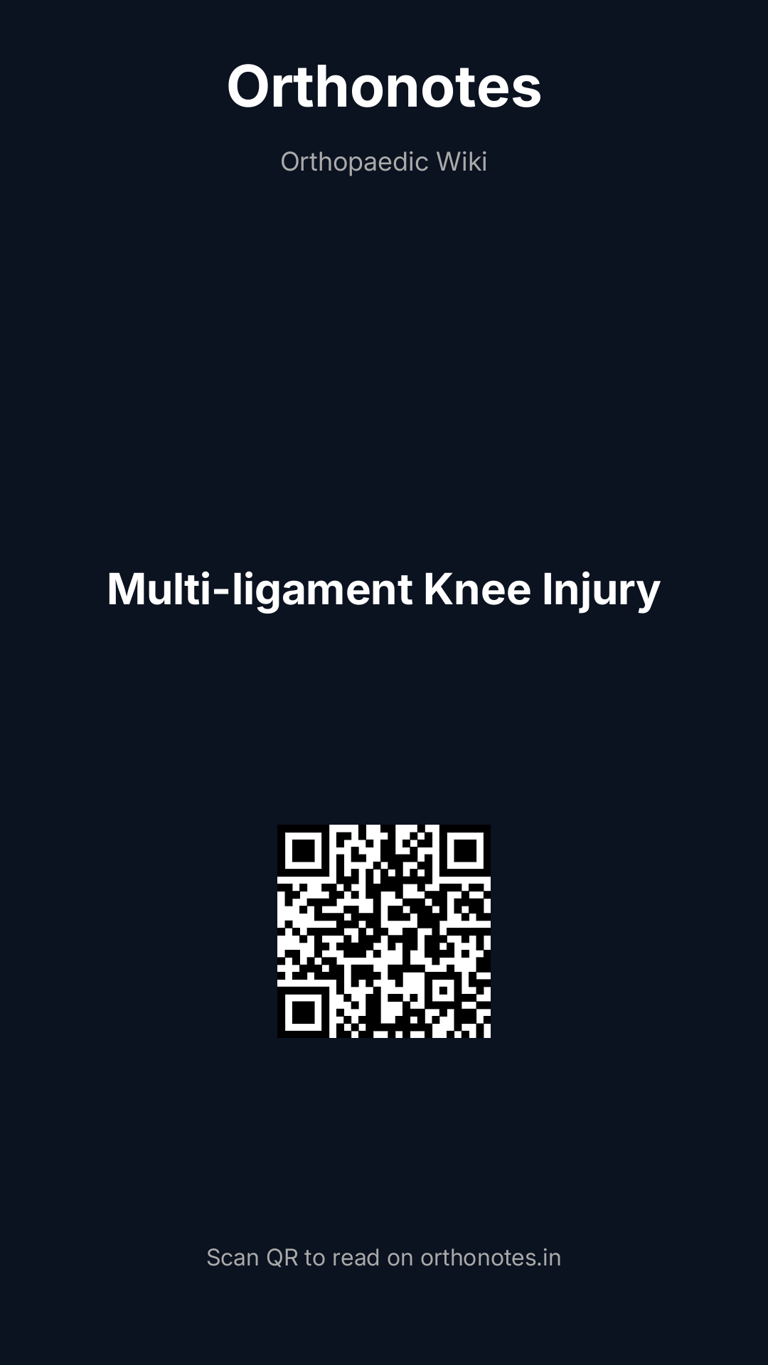 Multi-ligament knee injury (MLKI) represents one of the most complex and potentially limb-threatening injuries in orthopaedics. It involves disruption of two or more major ligamentous complexes of the knee and often implies true or spontaneously reduced knee dislocation. The priorities of management are: identify and treat vascular injury, assess neurological status, and plan timely ligamentous reconstruction to restore knee stability and prevent long-term arthritis.