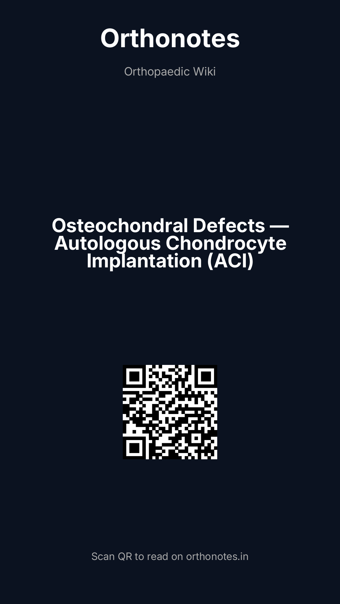 Autologous chondrocyte implantation (ACI) is a two-stage biological cartilage restoration technique in which the patient`s own articular chondrocytes are harvested, laboratory-cultured, and then re-implanted into a full-thickness chondral defect to regenerate hyaline-like cartilage. ACI is the preferred treatment for large symptomatic full-thickness chondral defects (>2–4 cm²) in young active patients where single-stage techniques (OATS/mosaicplasty) are insufficient. It produces cartilage that is superior to the fibrocartilage of microfracture and offers a biologically durable repair without the donor site limitations of OATS.