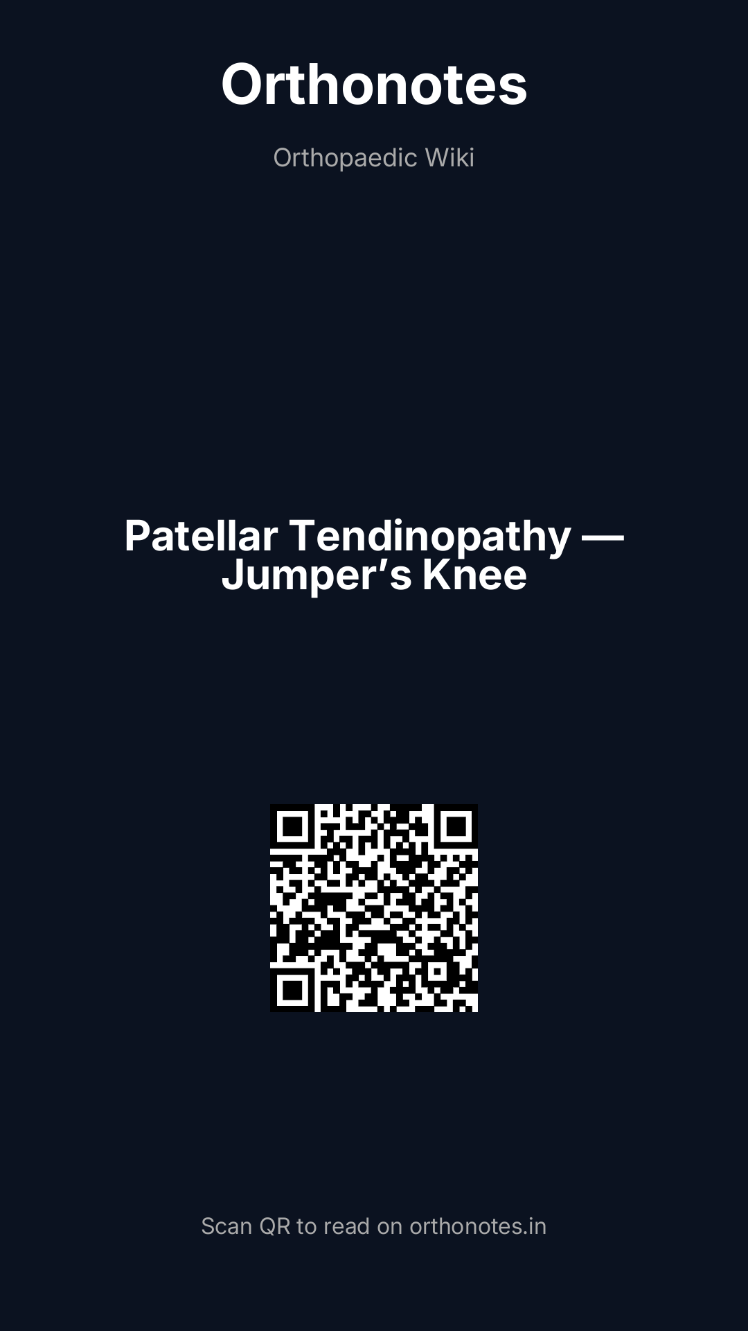 Patellar tendinopathy — commonly termed jumper`s knee — is a chronic overuse condition of the patellar tendon at its proximal attachment at the inferior pole of the patella, characterised by activity-related anterior knee pain and tendon degeneration. It is distinct from an inflammatory tendinitis; the underlying pathology is angiofibroblastic dysplasia (also termed tendinosis) — degenerative disorganised collagen, fibroblast proliferation, and neovascularisation without significant acute inflammatory infiltrate. This distinction is clinically important because anti-inflammatory treatments (NSAIDs, corticosteroids) do not address the underlying pathology and may have deleterious effects on the tendon.