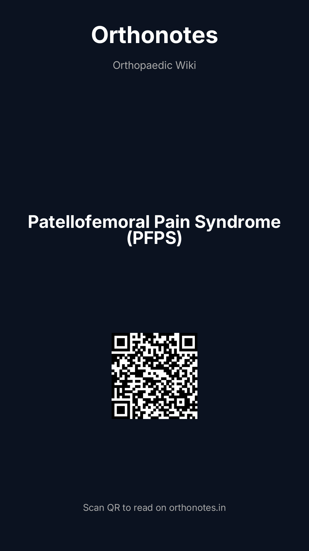 Patellofemoral pain syndrome (PFPS) — also termed anterior knee pain, chondromalacia patellae (a misnomer — this implies articular cartilage damage which is not always present), or runner`s knee — is the most common cause of anterior knee pain in young active individuals. It is a clinical diagnosis characterised by peripatellar or retropatellar pain, exacerbated by activities that load the patellofemoral joint (squatting, running, stairs, prolonged sitting). Despite its prevalence, the precise pathophysiology remains incompletely understood and management is primarily non-operative.