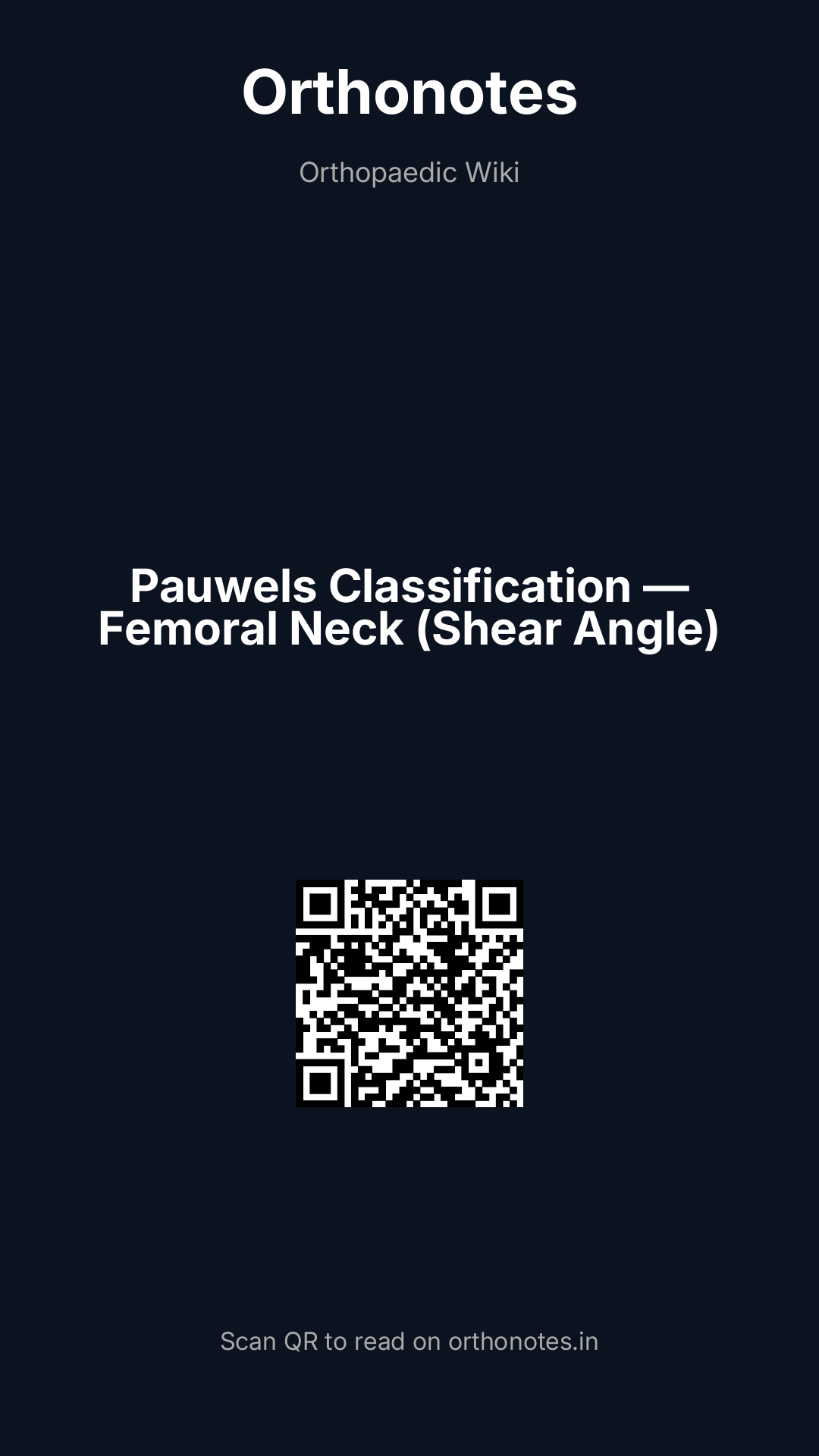 Femoral neck fractures are the most clinically significant fractures in orthopaedic practice — they predominantly occur in elderly osteoporotic patients from low-energy falls, carry a 30-day mortality of approximately 5–10% and 1-year mortality of 25–35%, and their management represents one of the highest volumes of surgical work in orthopaedics worldwide. The Pauwels classification (1935), developed by Friedrich Pauwels, classifies femoral neck fractures by the angle that the fracture line makes with the horizontal — the `Pauwels angle`. This angle is a direct indicator of the ratio of shear forces to compressive forces acting at the fracture site, and therefore predicts the mechanical stability of the fracture and the risk of non-union or implant failure. While the Garden classification (grading displacement) is more commonly used clinically, the Pauwels system remains fundamental for understanding femoral neck fracture biomechanics.