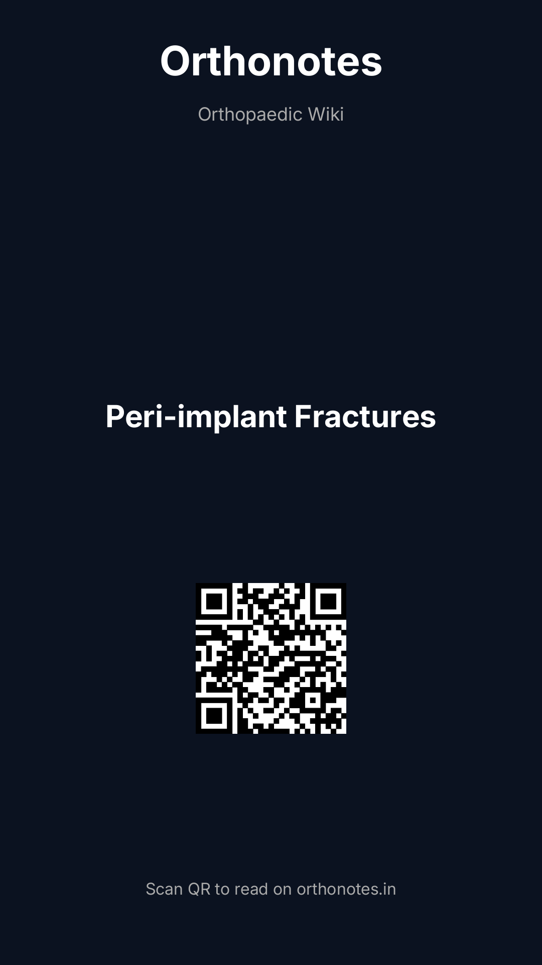 Peri-implant fractures are fractures that occur in the presence of an orthopaedic implant such as plates, screws, intramedullary nails, or joint prostheses. These fractures may occur either adjacent to the implant or through the bone segment containing the implant. They are becoming increasingly common due to the widespread use of orthopaedic implants and the aging population.
