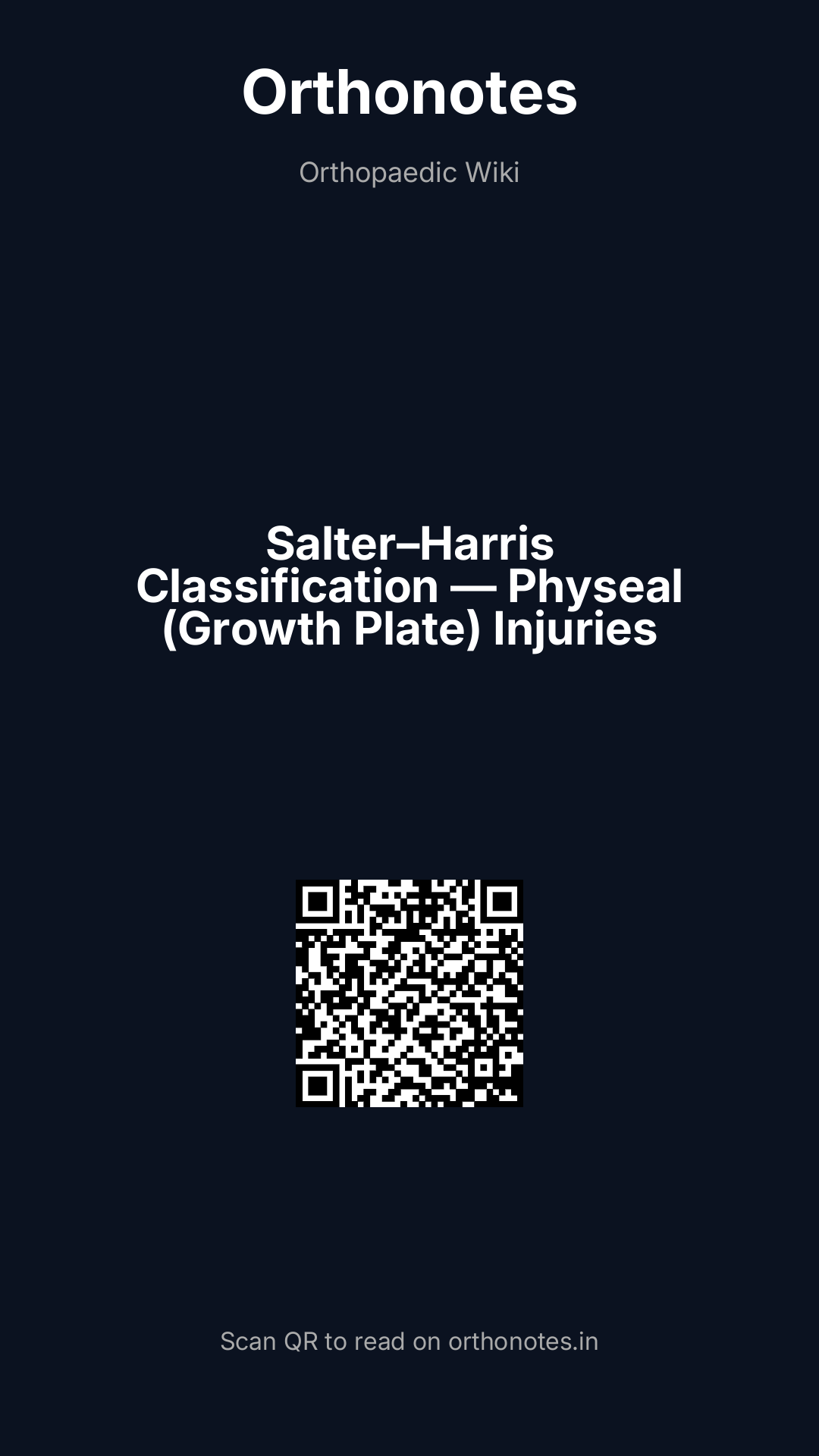 The Salter-Harris (SH) classification of physeal (growth plate) fractures is the most universally used and clinically important classification system in paediatric orthopaedics. Introduced by Robert Salter and W. Robert Harris in 1963, it describes five types of physeal injury based on the relationship of the fracture line to the physis (growth plate), the epiphysis, and the metaphysis. The classification directly predicts the risk of growth disturbance, guides surgical decision-making (whether to reduce, how to fix, and how to follow up), and communicates fracture severity between clinicians. A dedicated article on growth plate zones and biology is provided separately (see Epiphyseal Growth Plate — Zones & Regulation, Article 165); this article focuses on the classification system, clinical application, and the fracture-specific implications of each type.