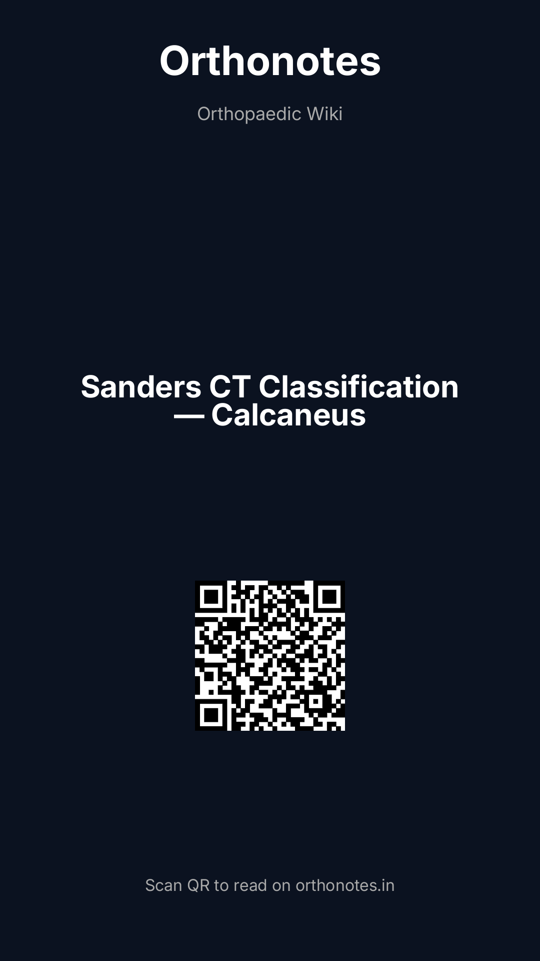 The Sanders classification is the universally accepted CT-based classification system for intra-articular calcaneal fractures, specifically those involving the posterior facet of the subtalar joint. Developed by Roy Sanders and colleagues in 1992–1993, it was the first practical CT-based system that could reliably guide surgical decision-making, predict outcomes, and communicate fracture complexity between surgeons. Prior plain radiograph-based systems (Essex-Lopresti, Rowe) were unable to adequately characterise the three-dimensional nature of calcaneal fractures — particularly the critical posterior facet — making CT an essential prerequisite for applying the Sanders classification.