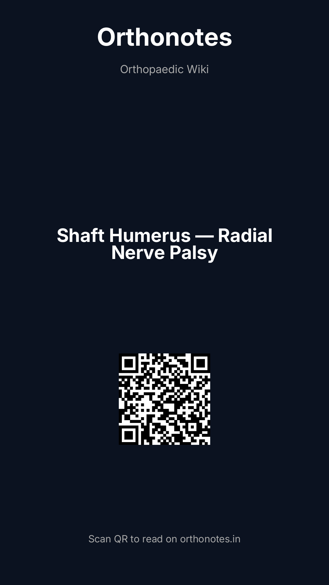 Fractures of the humeral shaft are relatively common injuries and represent approximately 3–5% of all fractures. These fractures are clinically important because of their close anatomical relationship with the radial nerve. Radial nerve palsy is the most common nerve injury associated with humeral shaft fractures and may present either at the time of injury or following fracture manipulation or surgical treatment.