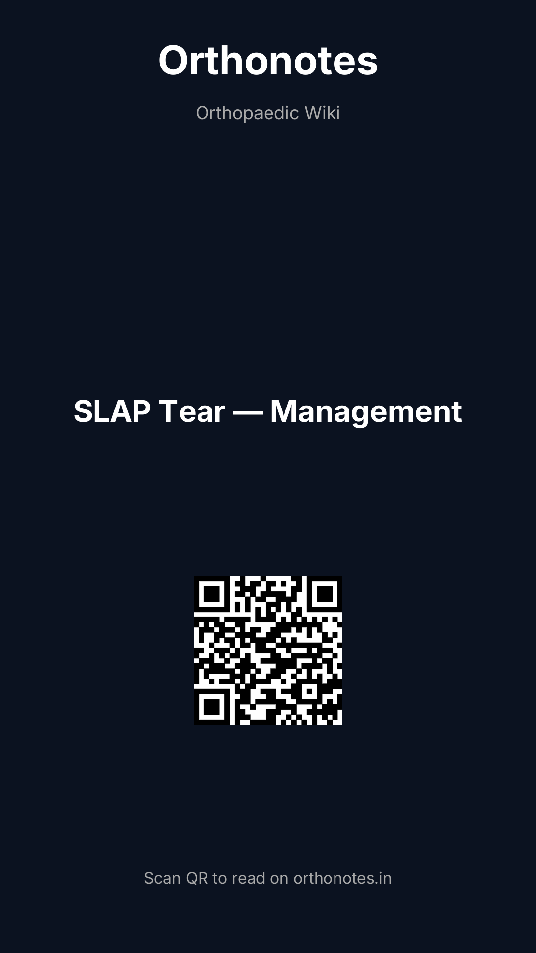 Management of SLAP tears has evolved significantly over the past decade. There is increasing recognition that SLAP repair in patients over 35–40 years of age and in non-overhead athletes carries high failure rates and poor outcomes, leading to a paradigm shift toward biceps tenodesis in these groups.