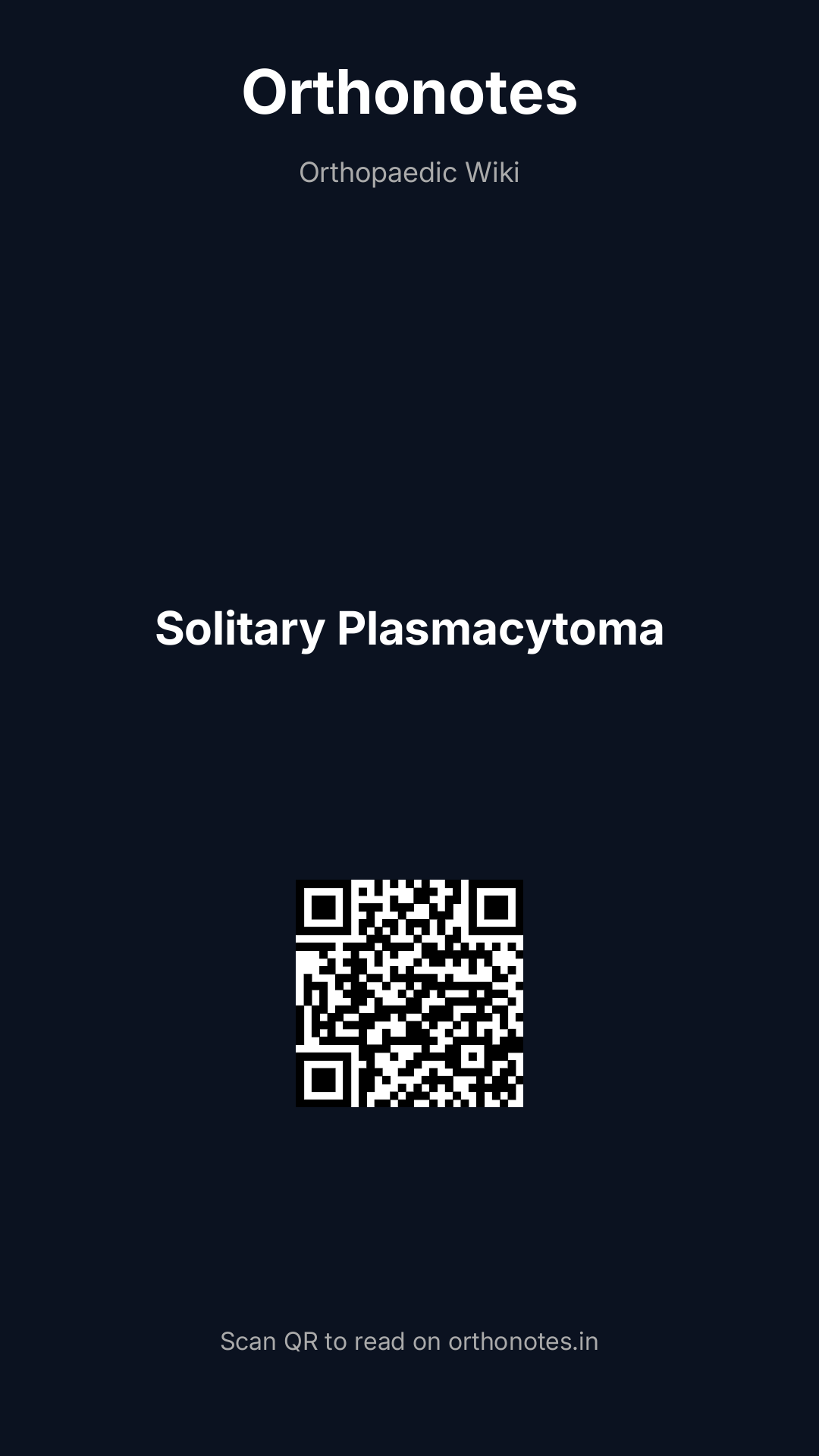 Solitary plasmacytoma is a clonal plasma cell neoplasm characterised by a single focus of abnormal plasma cells, either within bone (solitary bone plasmacytoma, SBP) or in soft tissue without bone involvement (extramedullary plasmacytoma, EMP), in the absence of systemic multiple myeloma. It represents the localised end of the plasma cell dyscrasia spectrum, with multiple myeloma (MM) at the disseminated end. The critical clinical question in solitary plasmacytoma management is whether the lesion truly represents isolated disease or is an early presentation of multiple myeloma.