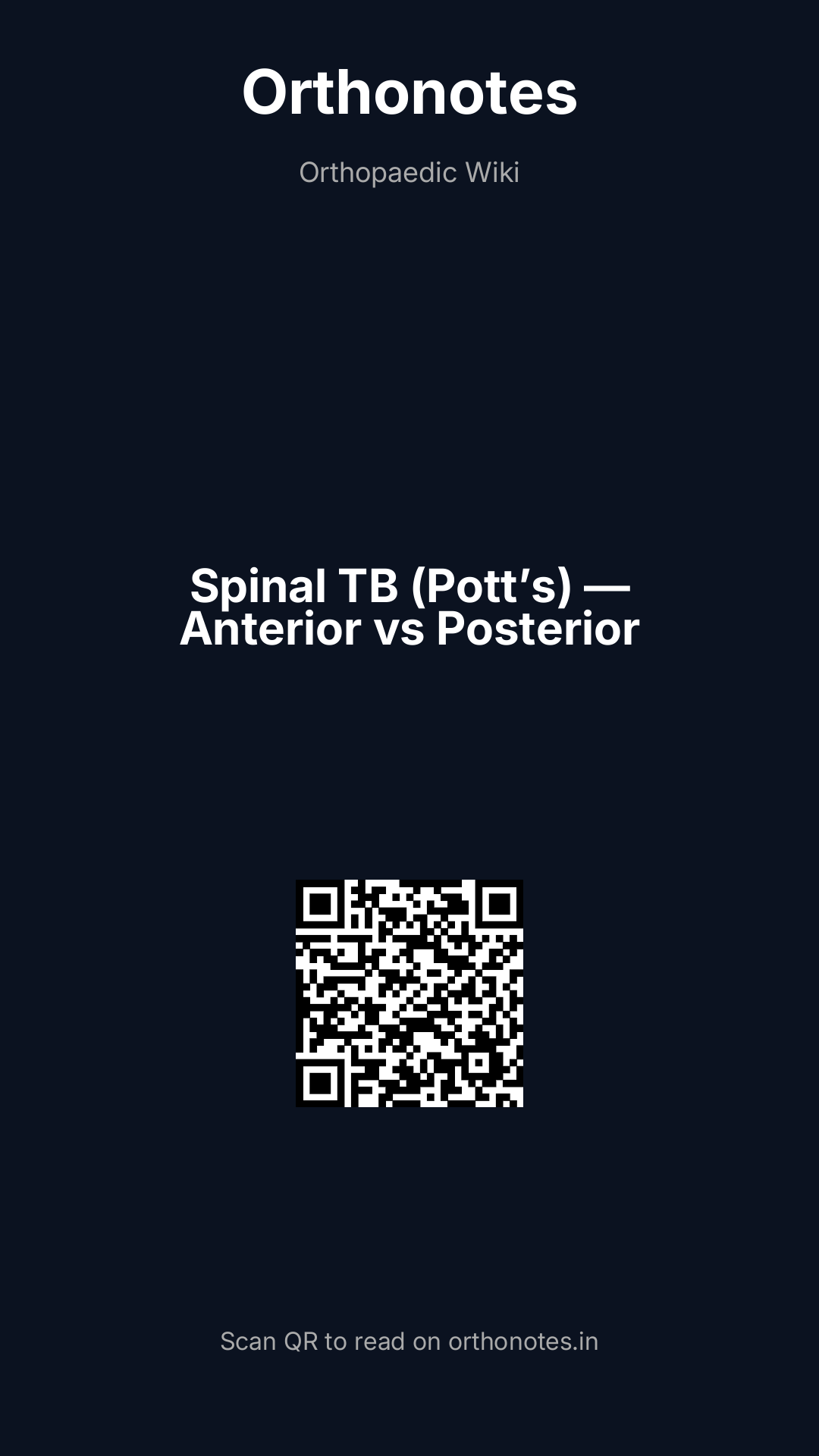 Spinal tuberculosis (Pott`s disease — named after Percivall Pott who described it in 1779) is the most common form of extrapulmonary skeletal tuberculosis, accounting for approximately 50% of all musculoskeletal tuberculosis. It remains a major global health problem, particularly in resource-limited settings, and is increasingly seen in immunocompromised patients (HIV, organ transplant, biologic therapies) and in high-prevalence immigrant populations in developed countries. The disease causes progressive vertebral body destruction, paravertebral abscess, and kyphotic deformity (gibbus deformity) — and threatens the spinal cord with compressive myelopathy.