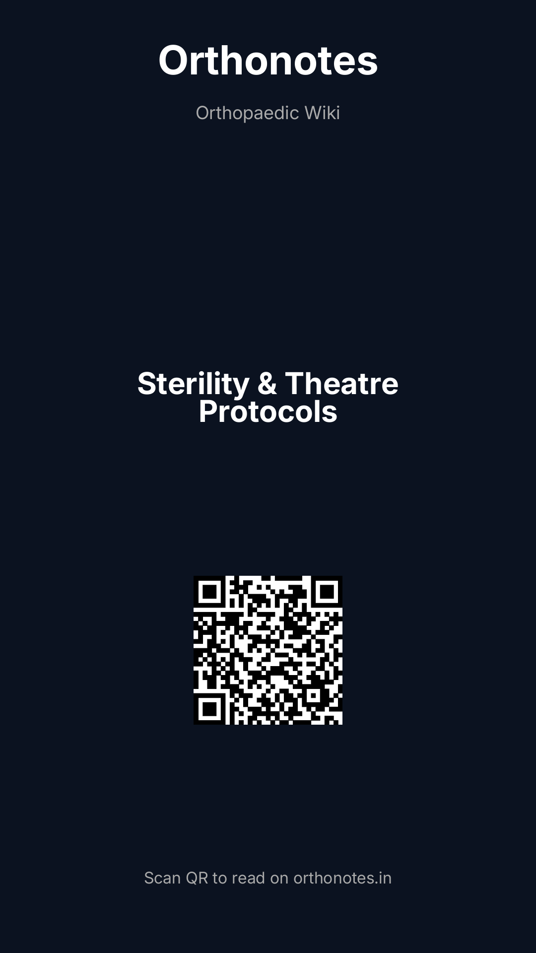 Surgical site infection (SSI) is one of the most common and costly healthcare-associated infections, occurring in approximately 2โ5% of surgical procedures and up to 10โ15% of orthopaedic implant surgery. The financial, functional, and mortality burden of SSI โ particularly prosthetic joint infection (PJI) โ is enormous. The theatre environment, sterility protocols, and aseptic technique are the principal weapons against surgical contamination. Every member of the surgical team has individual and collective responsibility for maintaining the sterile field. Understanding the scientific basis, hierarchy, and practical application of sterility measures is fundamental to surgical practice.