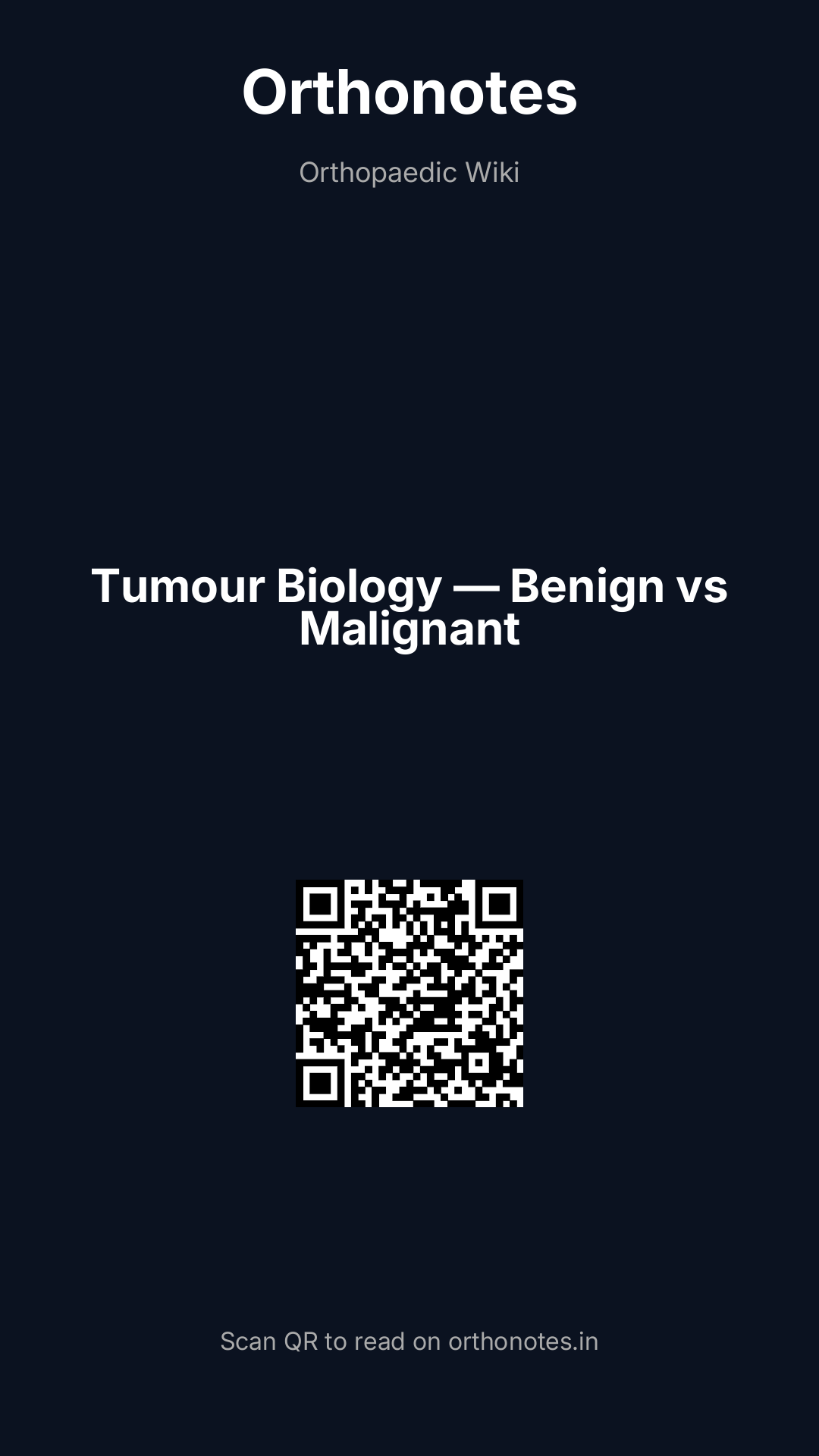 Tumour biology in orthopaedics focuses on the behavior, growth pattern and biological characteristics of bone and soft tissue tumours. Understanding the biological differences between benign and malignant tumours is essential for diagnosis, treatment planning and prognosis.