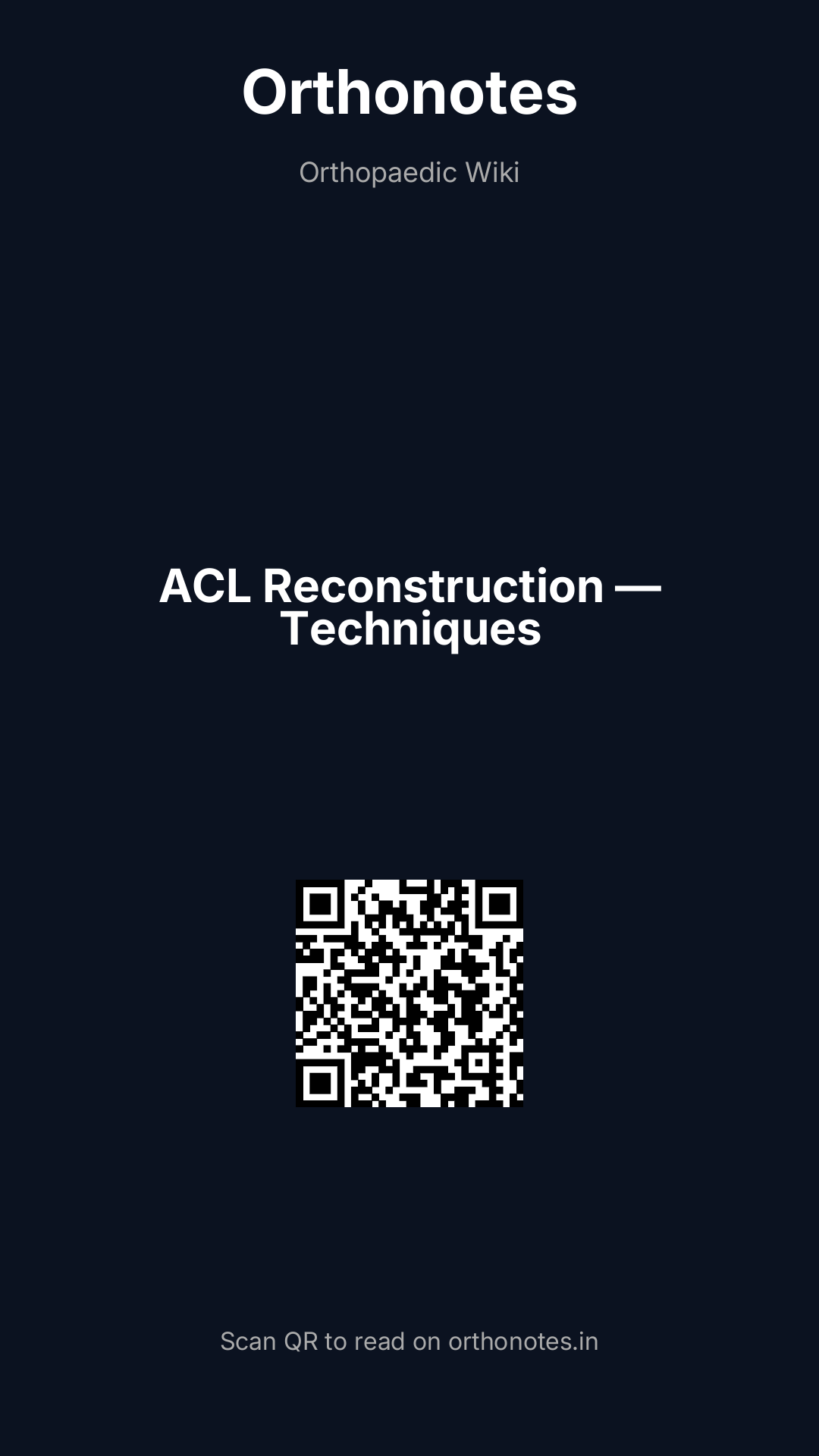 - Femoral tunnel: most critical technical factor — determines graft isometry and rotational control; anatomic femoral tunnel placement in the centre of the native ACL femoral footprint (approximately 11 o clock position in right knee, 1 o clock in left) is the goal; non-anatomic placement (vertical tunnel at roof) leads to rotational instability