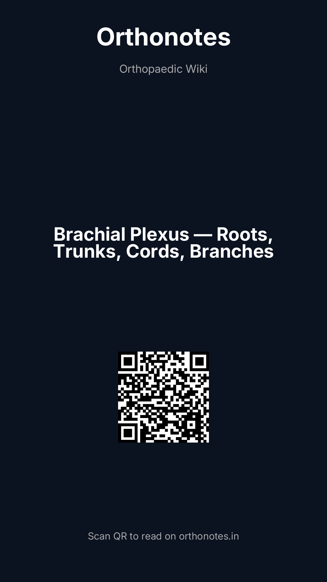Understanding the brachial plexus is extremely important for orthopaedic surgeons because injuries to the plexus frequently occur in trauma, shoulder dislocations, clavicle fractures and obstetric injuries. Accurate anatomical knowledge helps localize nerve injuries based on clinical examination.