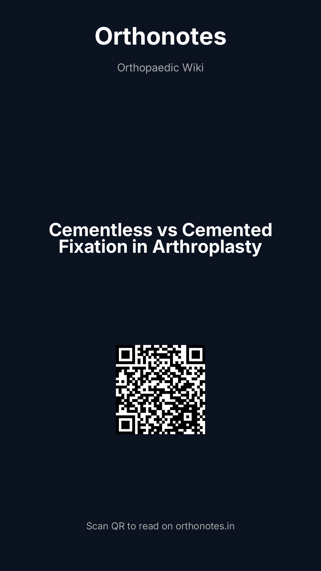 The mode of fixation of total hip and total knee arthroplasty components — cemented, cementless (biological), or hybrid — is one of the most debated topics in arthroplasty surgery. Cemented fixation uses polymethylmethacrylate (PMMA) bone cement to interlock the implant with the host bone, providing immediate fixation. Cementless fixation relies on bone ingrowth or ongrowth into a porous or roughened implant surface, achieving durable biological fixation over weeks to months. Hybrid fixation (cemented tibial and cementless acetabular cup, or vice versa) is used in specific situations. The optimal choice depends on patient age, bone quality, implant design, and joint.