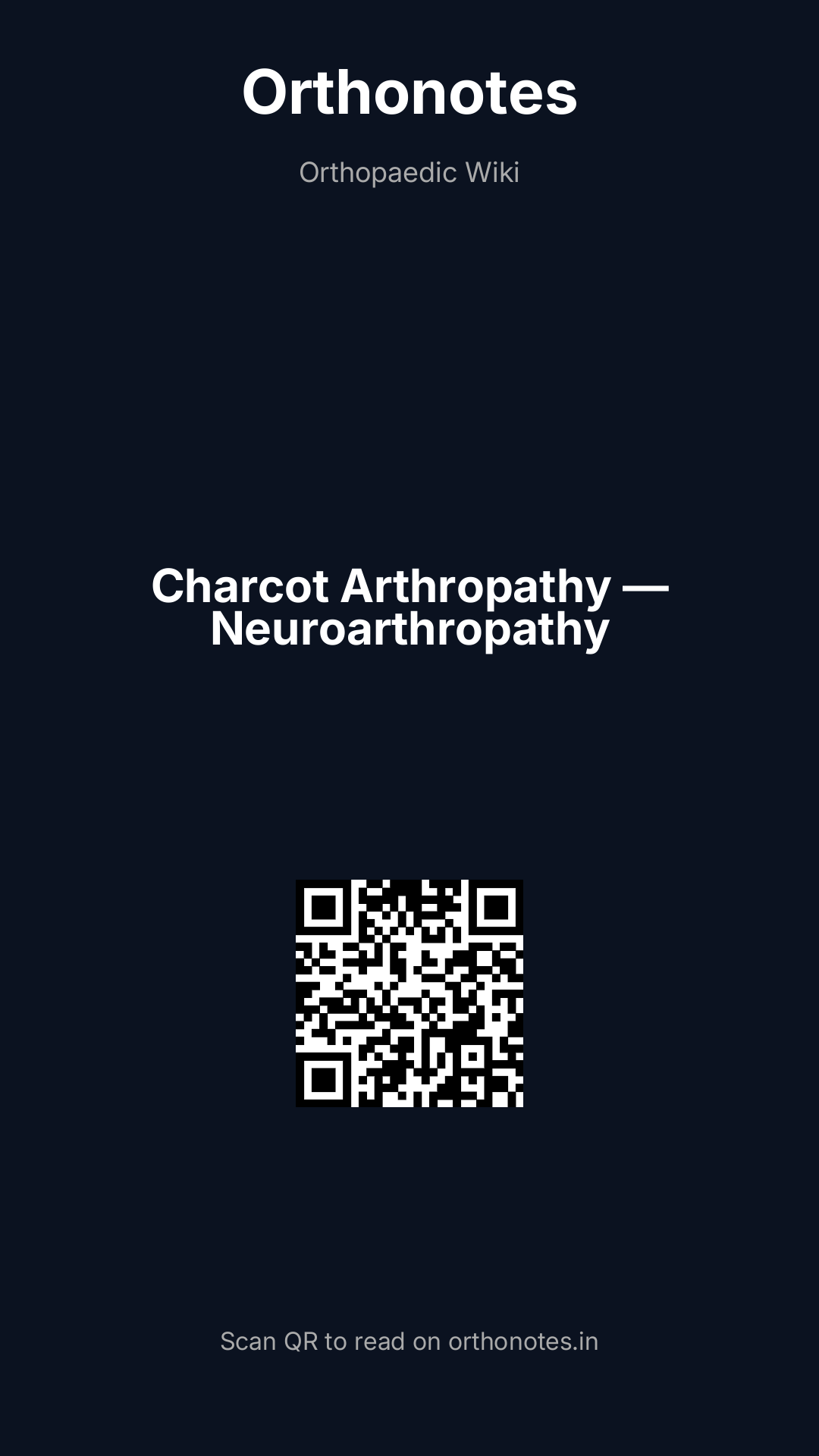 - Charcot arthropathy: peripheral neuropathy (diabetes in >90% of modern cases) + repetitive micro-trauma + autonomic dysfunction → progressive joint destruction; originally described by Charcot in tabetic (syphilis) patients in 1868