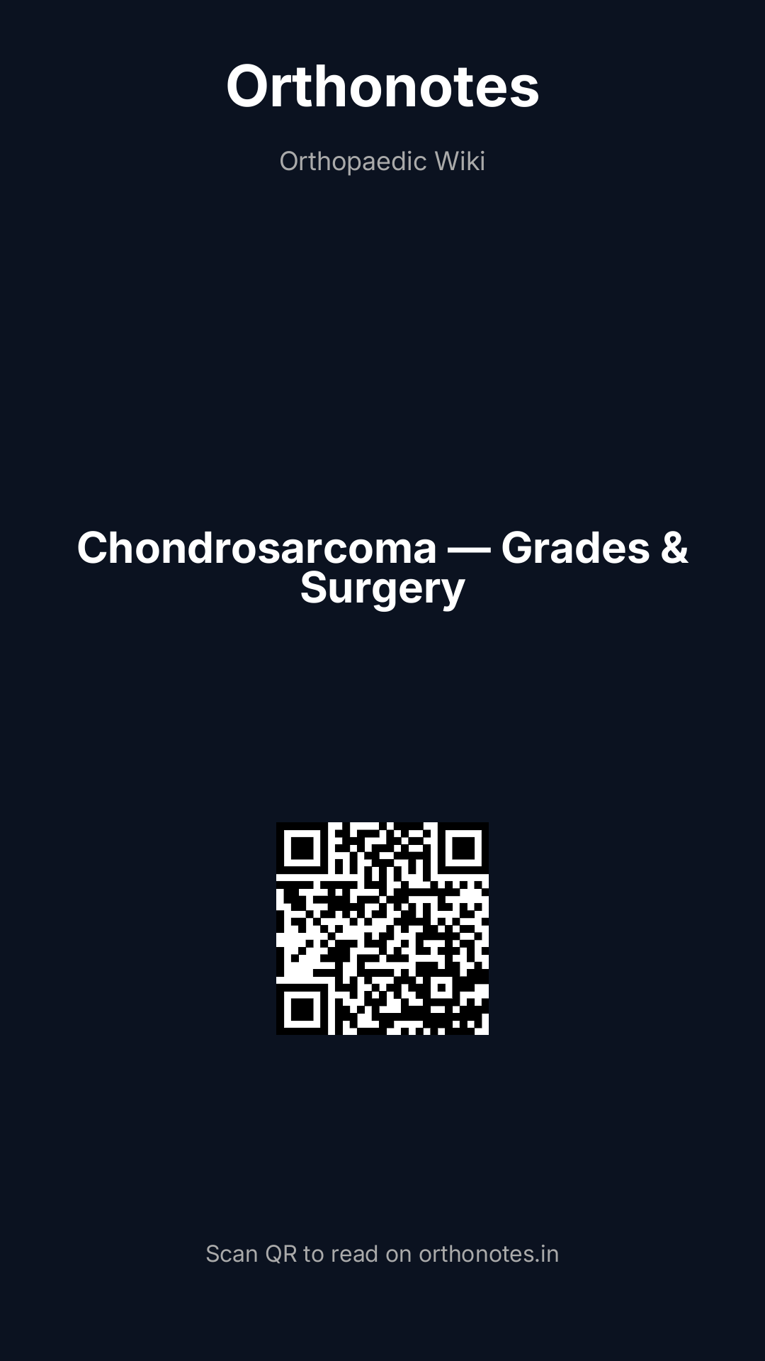 Chondrosarcoma is the second most common primary malignant bone tumour after osteosarcoma. It is a malignant tumour of cartilage-producing cells and, critically, is largely resistant to conventional chemotherapy and radiotherapy — surgical resection is the primary and often only effective treatment. The grade of the tumour is the most important determinant of prognosis and drives the surgical strategy, from intralesional curettage for low-grade lesions to wide resection for high-grade disease.