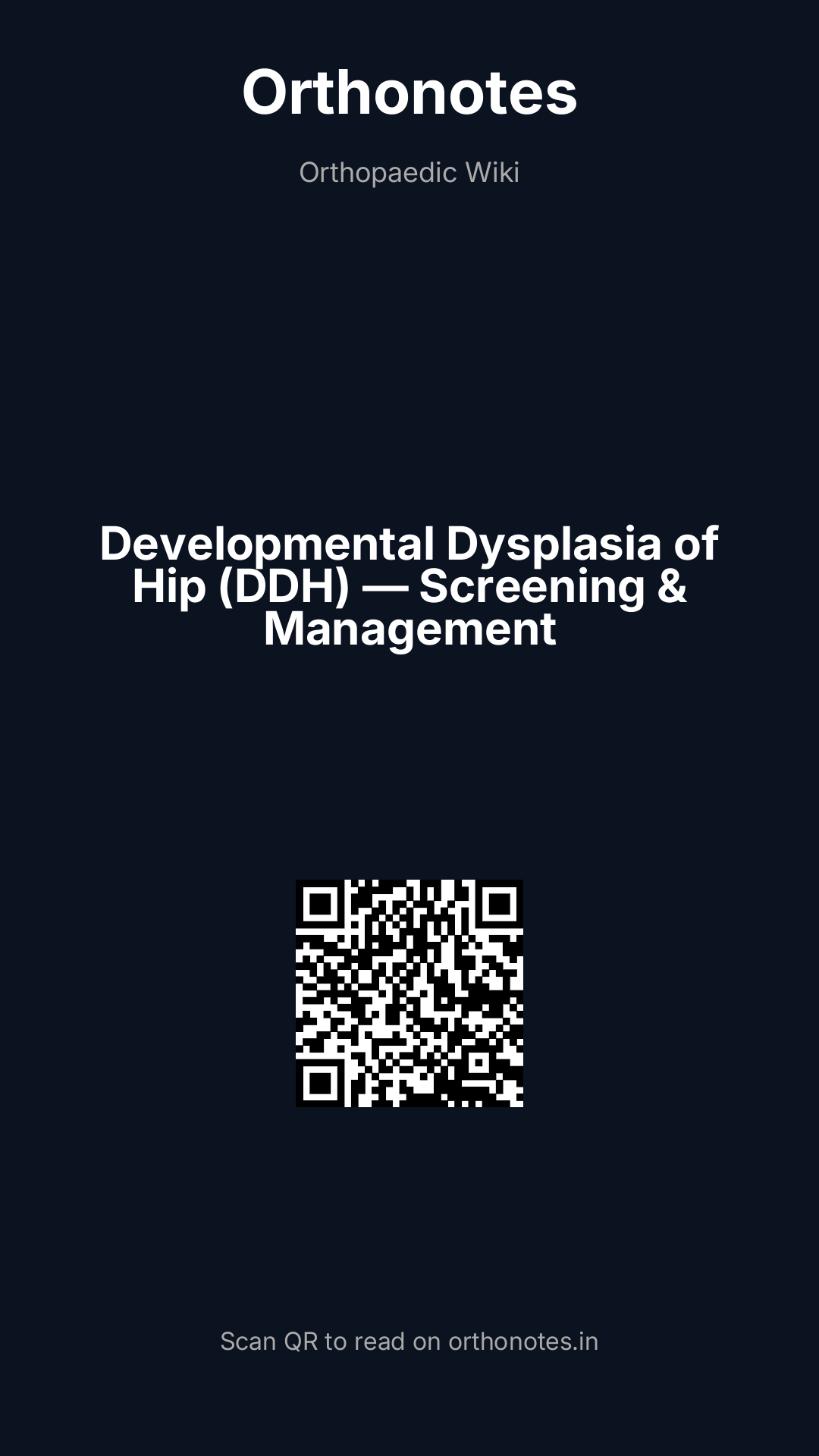 Developmental dysplasia of the hip (DDH) encompasses a spectrum of abnormalities in the developing hip, ranging from mild acetabular dysplasia to frank dislocation, in which the femoral head is not properly seated within the acetabulum. It is the most common musculoskeletal condition identified by newborn screening. Early diagnosis and treatment are essential — untreated DDH leads to abnormal hip development, progressive subluxation or dislocation, and early onset hip osteoarthritis in adulthood.