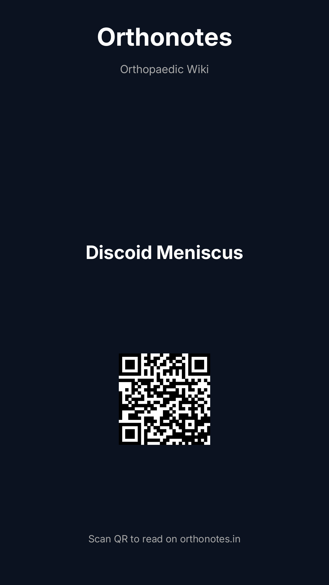 - Bilateral in approximately 15–20% of cases; the opposite knee should always be assessed or imaged when a discoid meniscus is identified