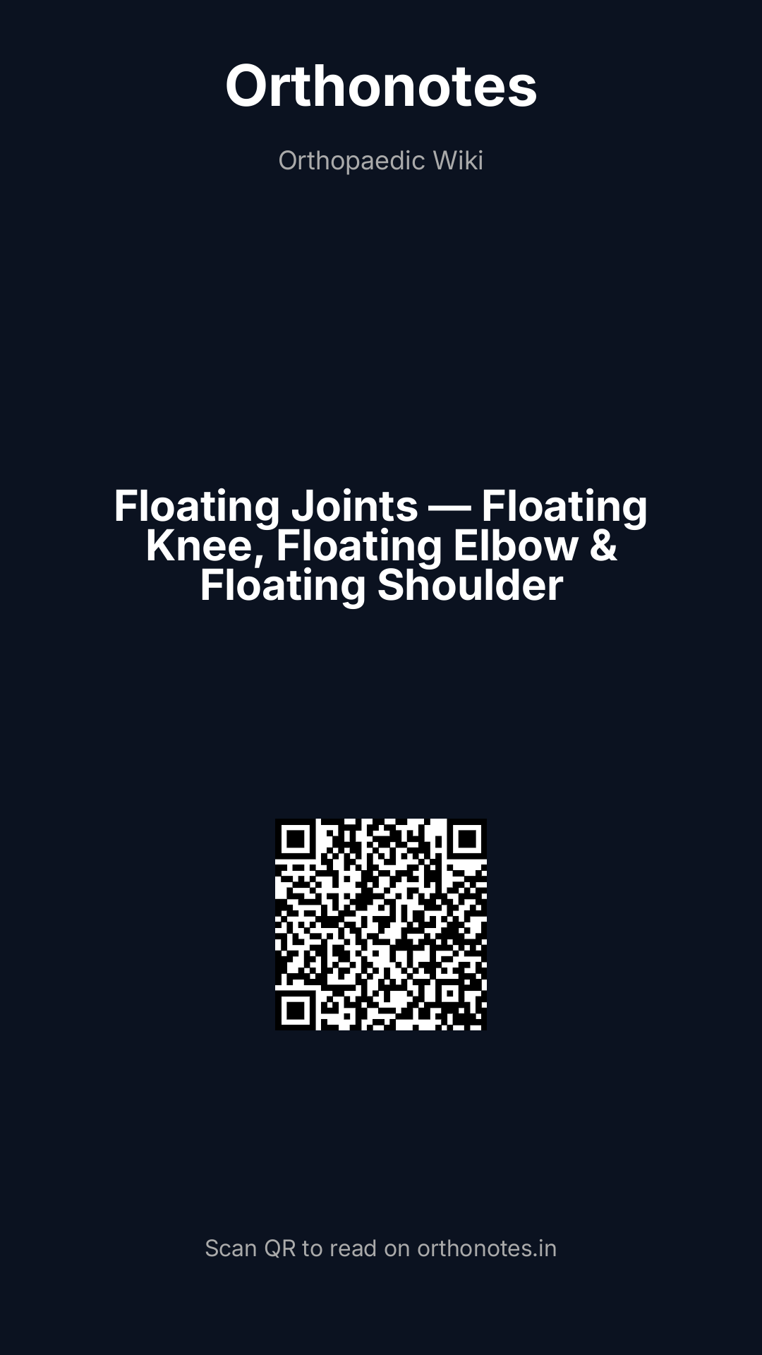 A `floating joint` describes a clinical and radiological pattern in which a joint is `freed` from the axial skeleton or the distal limb segment by fractures on BOTH sides of it — a proximal fracture and a distal fracture — resulting in the joint being suspended between two unstable bony segments with no direct skeletal continuity above or below. The joint itself is typically not dislocated, but its mechanical connections to the rest of the limb are lost, making the entire joint and its attached limb segment mechanically unsupported. The concept applies to three major joints in orthopaedic surgery: the KNEE (floating knee — ipsilateral femur and tibia fractures), the ELBOW (floating elbow — ipsilateral distal humerus and forearm fractures, predominantly in children), and the SHOULDER (floating shoulder — ipsilateral clavicle and scapular neck fractures disrupting the superior shoulder suspensory complex). All three patterns share common features: high-energy mechanisms, high rates of associated injuries, complex surgical management, and significant morbidity. Understanding the specific anatomy of each pattern, the classification systems, and the indications for operative versus non-operative management is essential for orthopaedic examinations and clinical practice.