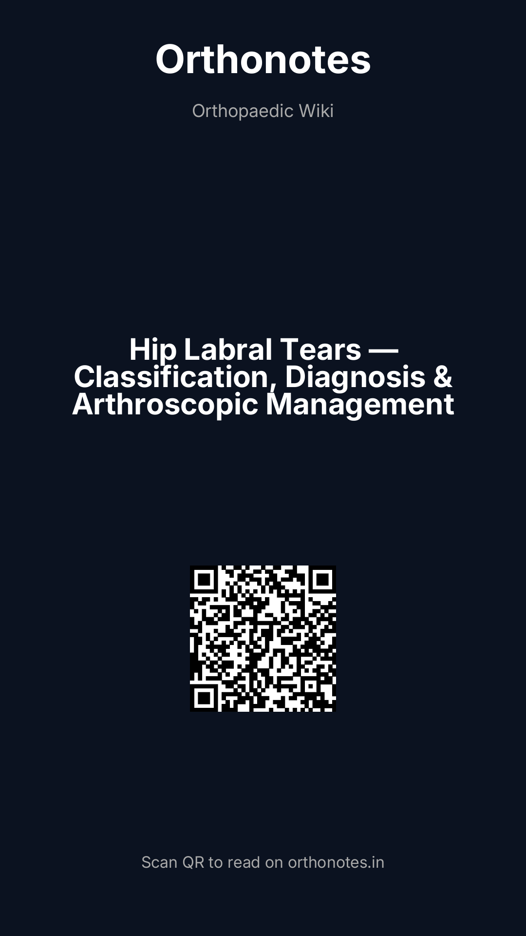 | Anatomical location | Descriptive — based on the clock-face position of the tear | Anterosuperior (most common — 12-3 o`clock position, associated with cam FAI); anterior (10-12 o`clock, associated with hip dysplasia and trauma); superior (12 o`clock, associated with pincer FAI); posterior (rarely symptomatic); inferior (rare) | Used universally in arthroscopic reports; the anterosuperior quadrant is the most clinically relevant zone for FAI-related tearing |
