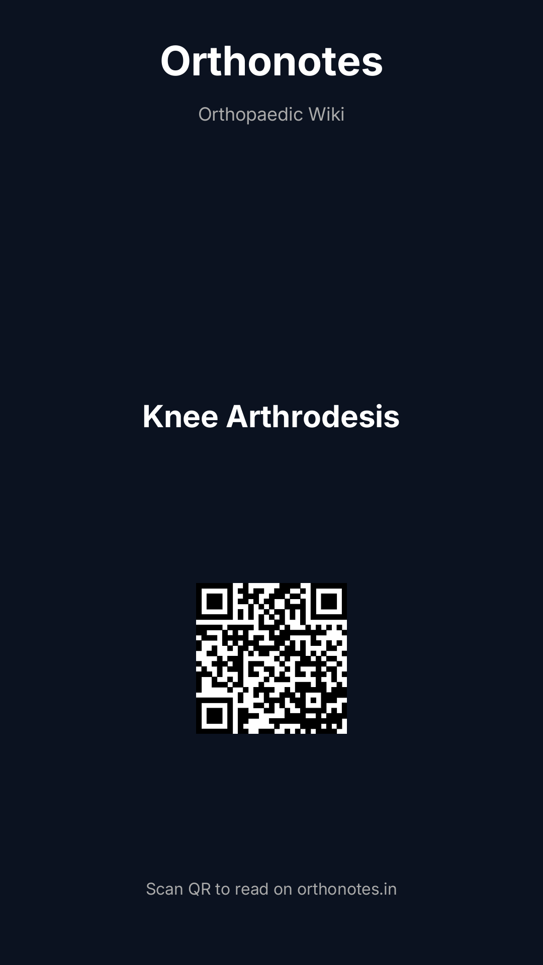 - Failed TKA with PJI is now the most common indication — when a two-stage revision arthroplasty is not possible (persistent infection despite spacer, resistant organisms, inadequate bone and soft tissue, patient comorbidities), arthrodesis provides a reliable alternative to amputation