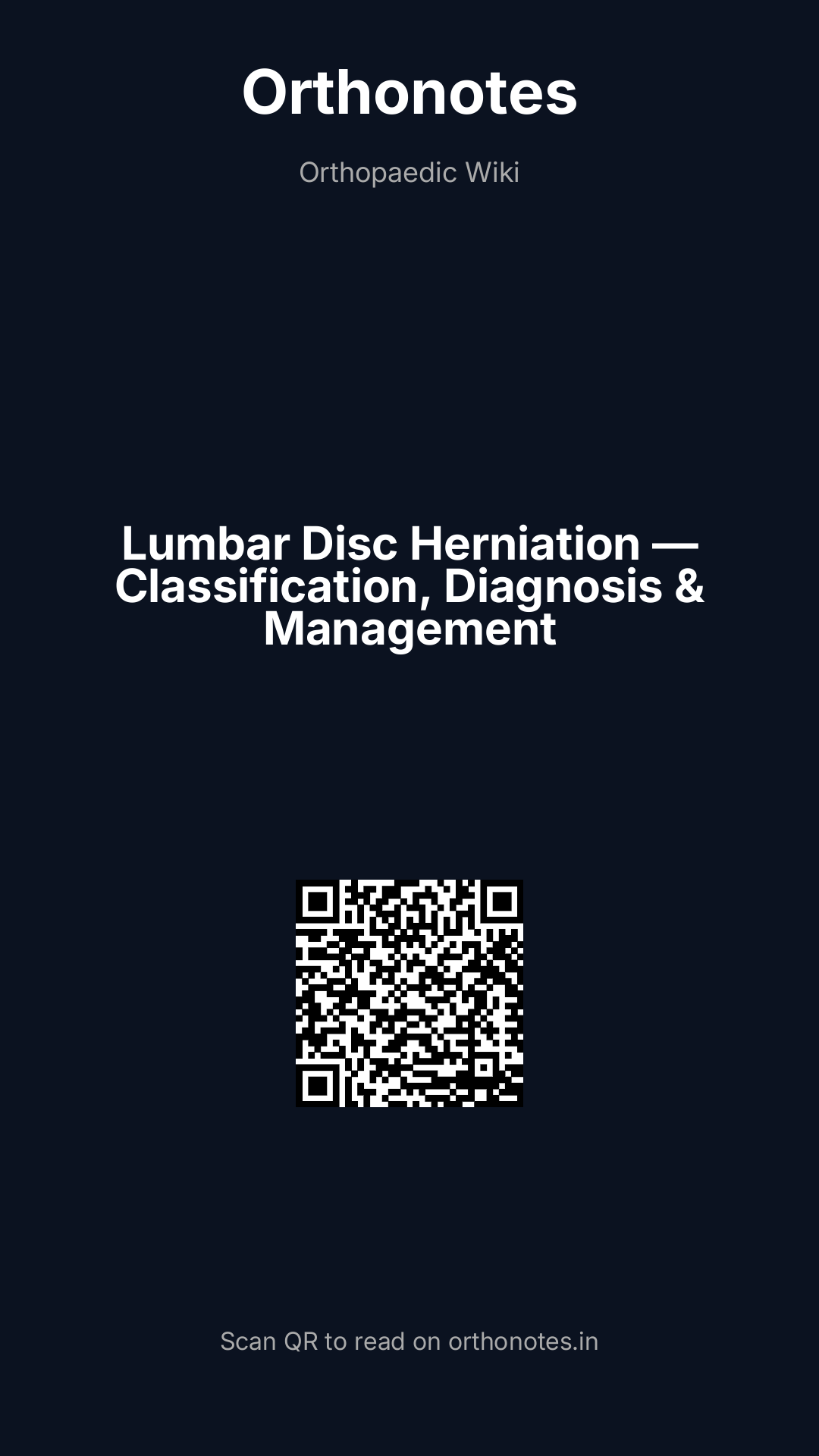 Lumbar disc herniation (LDH) is one of the most common and clinically significant conditions in orthopaedic and spinal surgery, affecting approximately 1–3% of the population at any given time and accounting for the majority of surgically treated spinal conditions worldwide. It occurs when nuclear material from the intervertebral disc — the nucleus pulposus — migrates through a defect in the annulus fibrosus to compress adjacent neural structures (nerve roots or, in severe cases, the cauda equina). The clinical syndrome that results — radiculopathy — is characterised by pain, paraesthesia, and neurological deficit in the dermatomal and myotomal distribution of the compressed nerve root, and must be distinguished from referred (non-dermatomal) back pain. The vast majority of lumbar disc herniations (approximately 90%) resolve with conservative management within 6–12 weeks; surgery is indicated for a minority of patients who fail conservative management or who present with progressive neurological deficit or cauda equina syndrome.