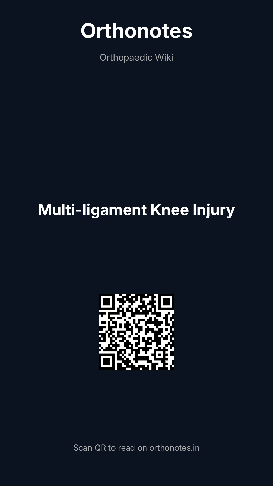 Multi-ligament knee injury (MLKI) represents one of the most complex and potentially limb-threatening injuries in orthopaedics. It involves disruption of two or more major ligamentous complexes of the knee and often implies true or spontaneously reduced knee dislocation. The priorities of management are: identify and treat vascular injury, assess neurological status, and plan timely ligamentous reconstruction to restore knee stability and prevent long-term arthritis.