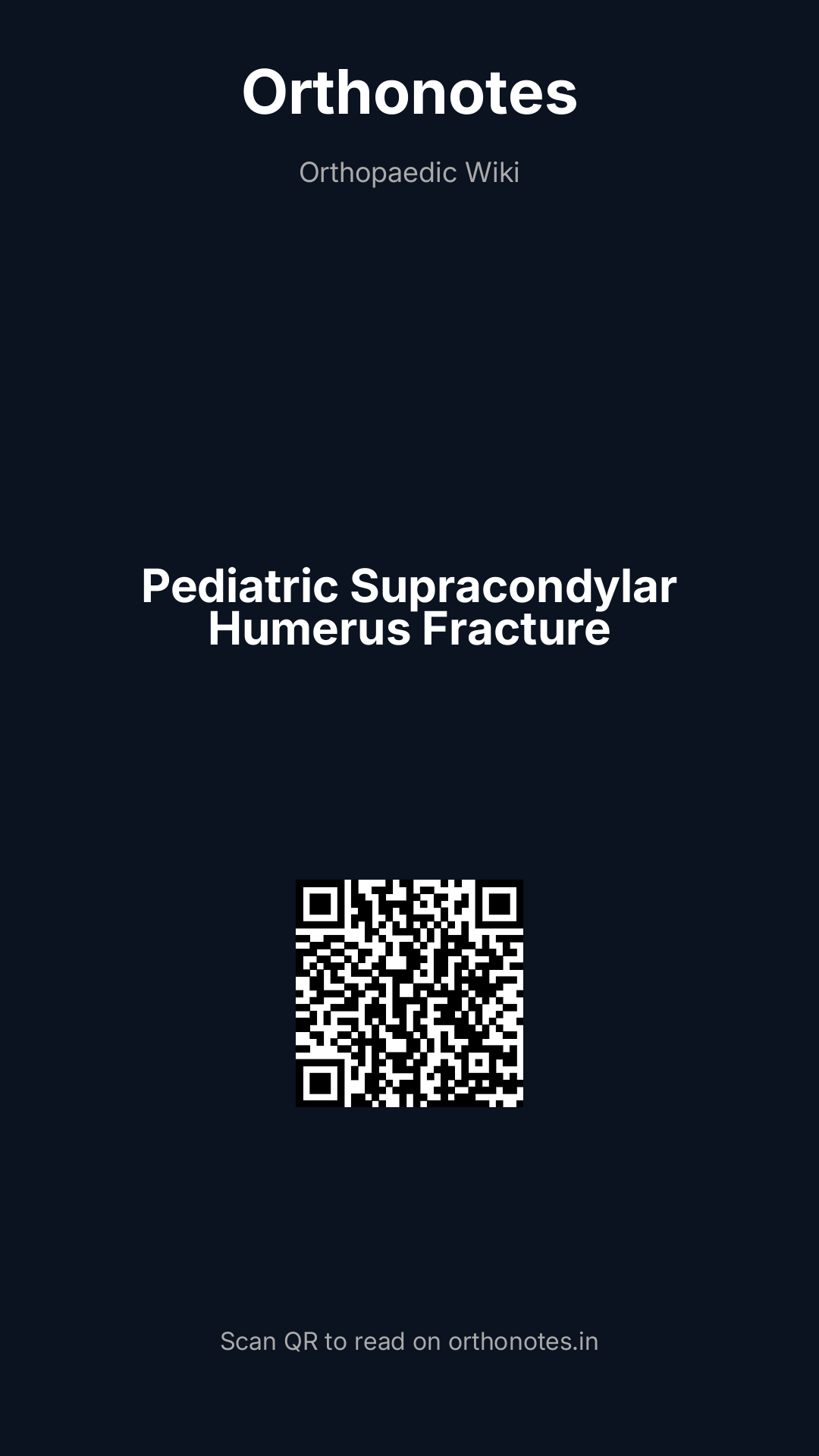 Supracondylar humerus fractures (SCHFs) are the most common elbow fractures in children, accounting for approximately 60% of all paediatric elbow fractures. They occur predominantly between 5–8 years of age, when the olecranon fossa is most prominent and the anterior humeral cortex is relatively thin. The clinical importance of this fracture is disproportionate to its frequency — it carries a well-defined risk of neurovascular injury, Volkmann ischaemic contracture, and malunion causing cubitus varus deformity (the `gunstock deformity`). All paediatric orthopaedic surgeons must have a thorough command of the classification, neurovascular assessment, reduction techniques, fixation principles, and complication management.