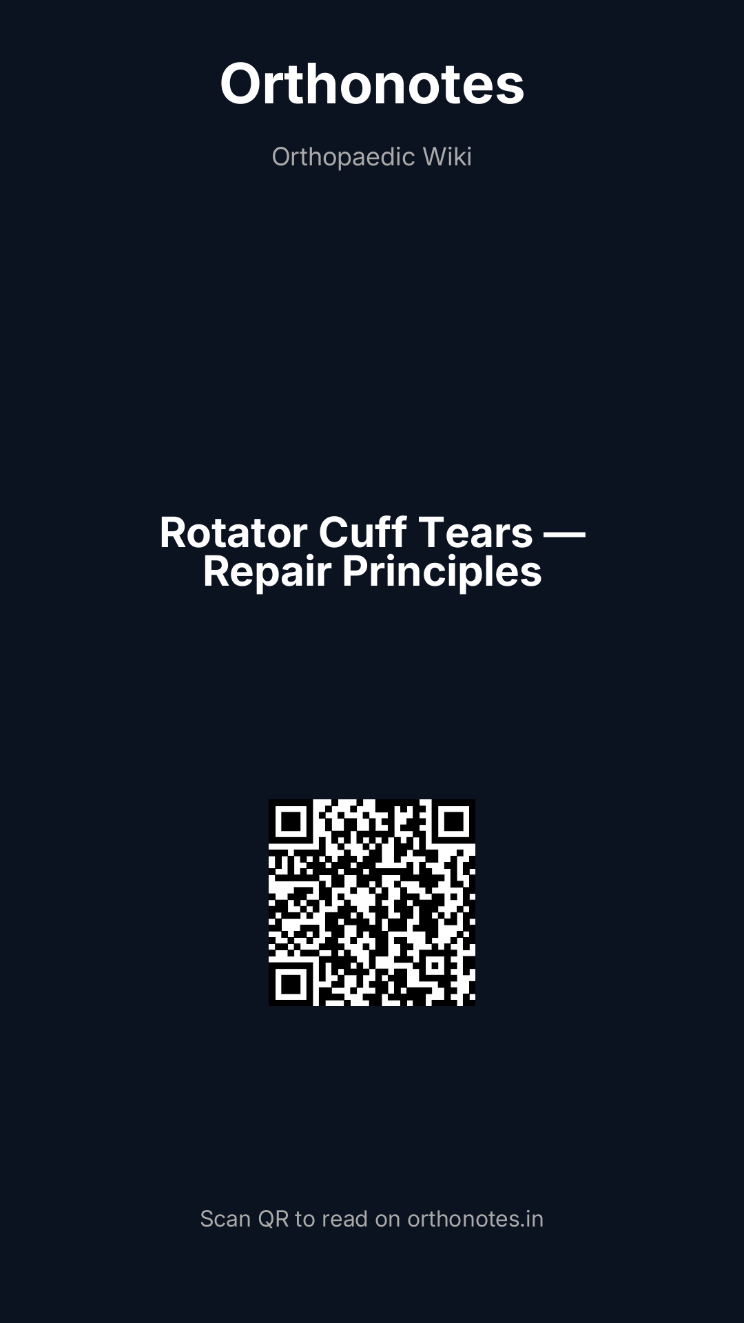- Arthroscopic vs open repair: arthroscopic repair is now the standard approach for most tears — smaller incisions, faster recovery, equivalent or superior outcomes compared to mini-open or open repair; mini-open repair (lateral deltoid-splitting approach after arthroscopic subacromial work) is still used in some centres for larger tears