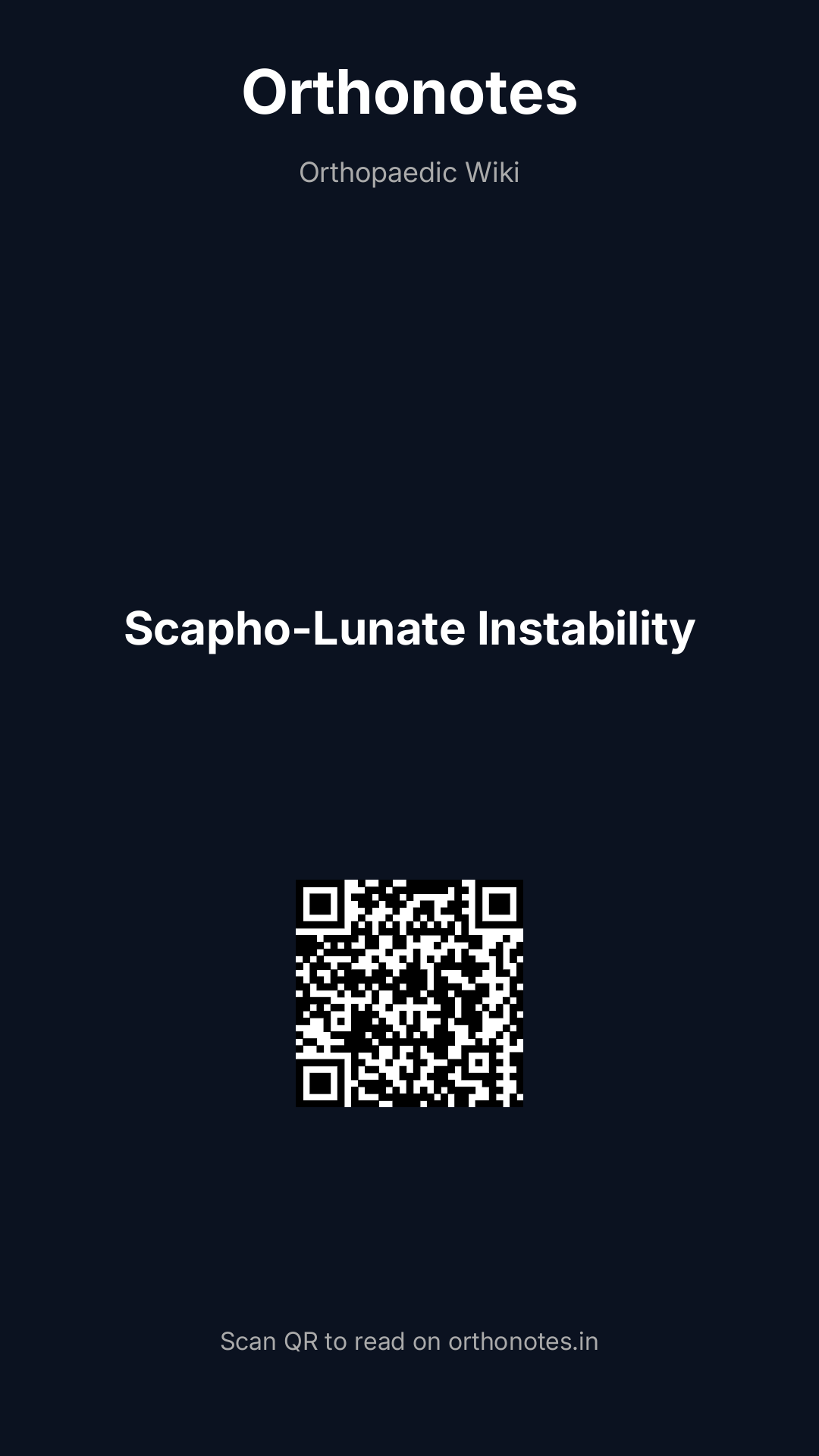 Scapholunate (SL) instability is the most common form of carpal instability, resulting from disruption of the scapholunate ligament complex. The scapholunate ligament (SLL) is the primary intrinsic stabiliser between the scaphoid and lunate — when disrupted, the scaphoid and lunate dissociate, producing a predictable pattern of carpal malalignment. If untreated, progressive carpal collapse occurs in a characteristic pattern (SLAC wrist — scapholunate advanced collapse), leading to wrist arthritis. Early diagnosis and appropriate management are essential to prevent this progression.