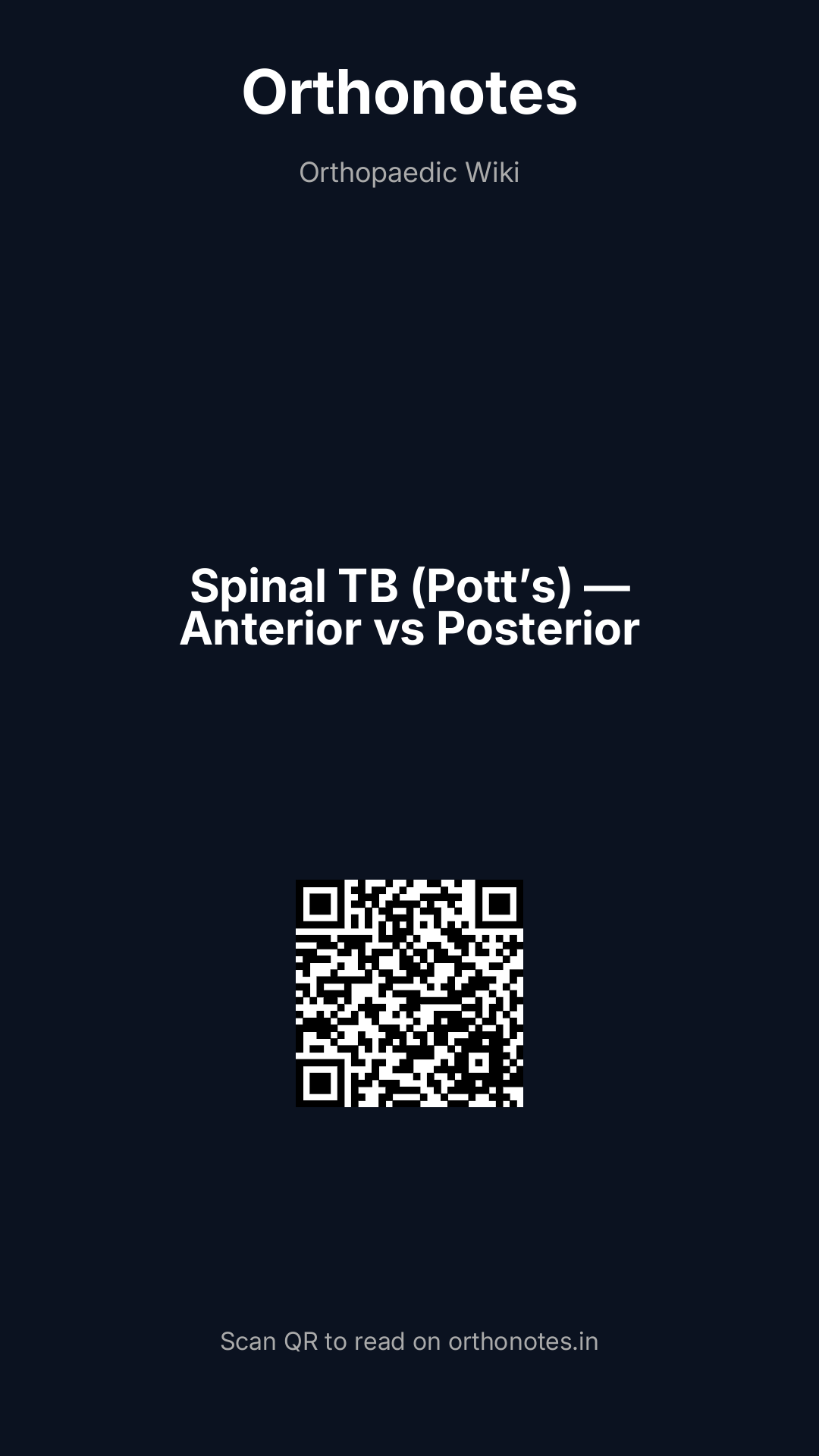 Spinal tuberculosis (Pott`s disease — named after Percivall Pott who described it in 1779) is the most common form of extrapulmonary skeletal tuberculosis, accounting for approximately 50% of all musculoskeletal tuberculosis. It remains a major global health problem, particularly in resource-limited settings, and is increasingly seen in immunocompromised patients (HIV, organ transplant, biologic therapies) and in high-prevalence immigrant populations in developed countries. The disease causes progressive vertebral body destruction, paravertebral abscess, and kyphotic deformity (gibbus deformity) — and threatens the spinal cord with compressive myelopathy.
