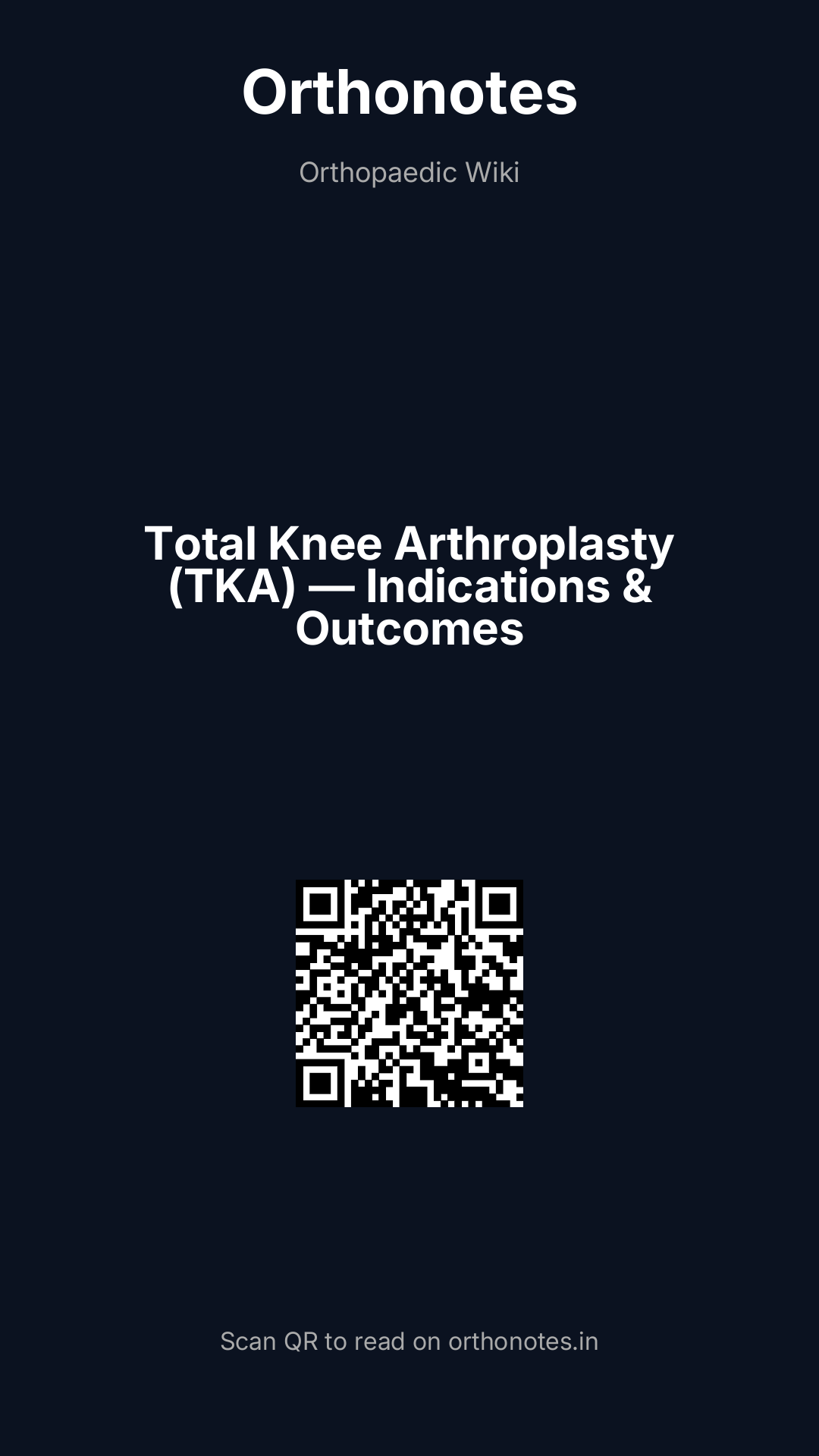 - Indications: end-stage knee OA (tricompartmental or bicompartmental) with severe pain and functional disability failing non-operative treatment; inflammatory arthritis with joint destruction; post-traumatic arthritis; failed HTO or UKA; AVN of the knee; severe coronal deformity (>15° varus/valgus) or flexion contracture not amenable to osteotomy